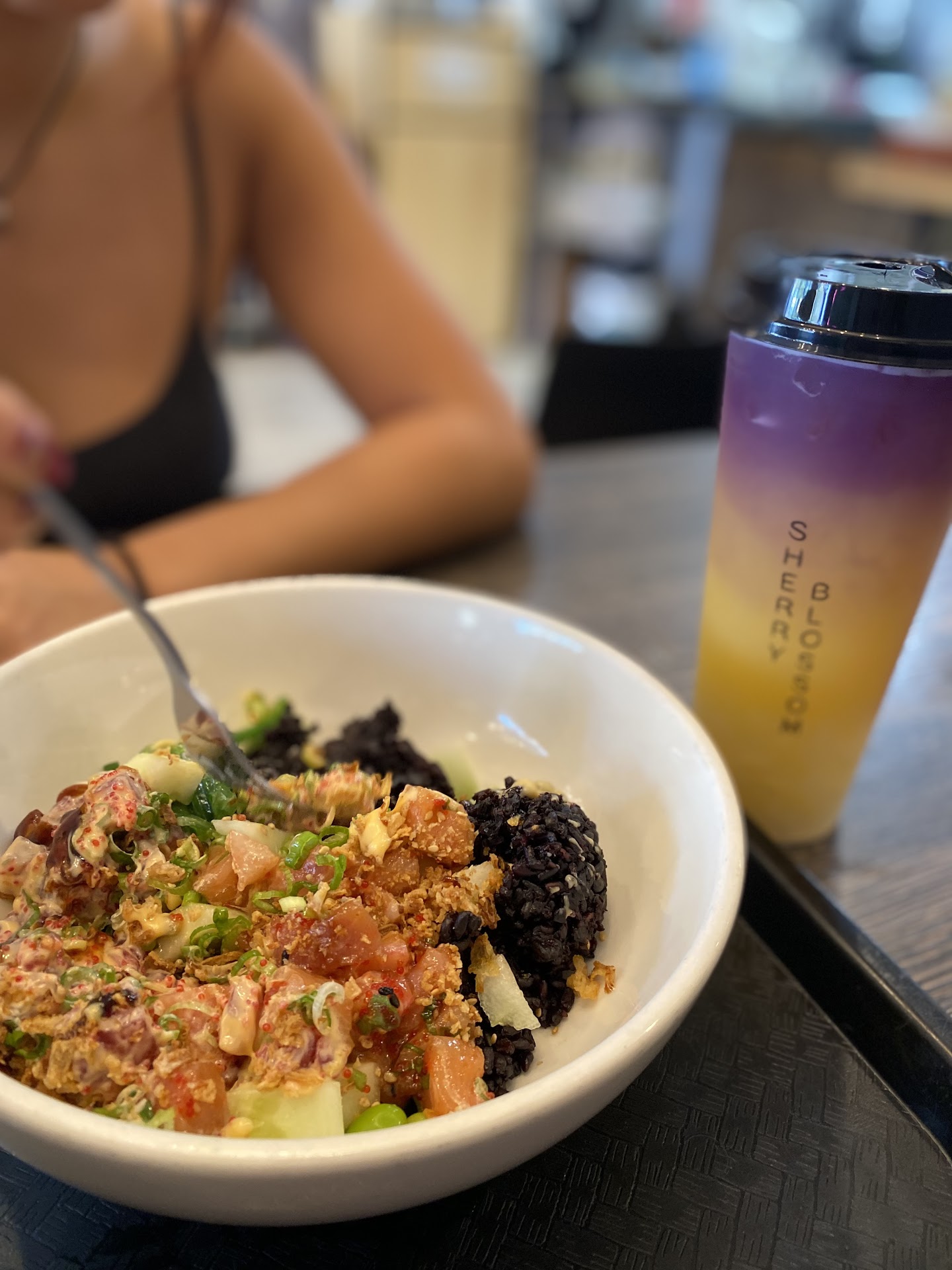 Sherry Blossom has the Best Poke bowls, ramen and bubble tea! We went in on Saturday to have a lunch. We’ve travelled to NYC, CT for good ramen, poke and bubble teas, and we find Sherry Blossom to be the best one! Tuna, salmon and hamachi were so fresh, black rice is on point and the condiments/sauce make it perfect. Pork ramen had smoky flavor from charsu and eggs were cooked perfectly. Also loved homemade soup dumplings. Passion fruit bubble tea with lychee is our favorite drink. Sherry makes this place so special by greeting everyone with smile and provide amazing food. It surely made our weekend very special. We walked around the farmers market across the street (with bubble tea) and everyone at the market raved about Sherry’s. Can’t wait to come back!