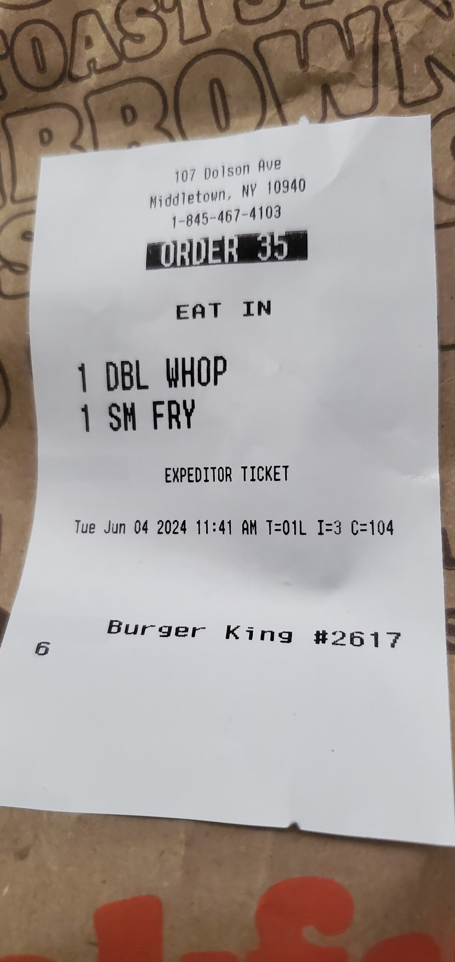 Read moreShould have read the reviews first. After sitting in line for 5 minutes (no other cars in line) a male employee asks what sauce I wanted. I told him I didn’t place my order yet! He says hold on and let’s me sit for several more minutes. I asked for a burger no pickles no tomatoes and a large order of fries. He repeats back to me “Burger, no onions and a cup of water”. Had to repeat the order.