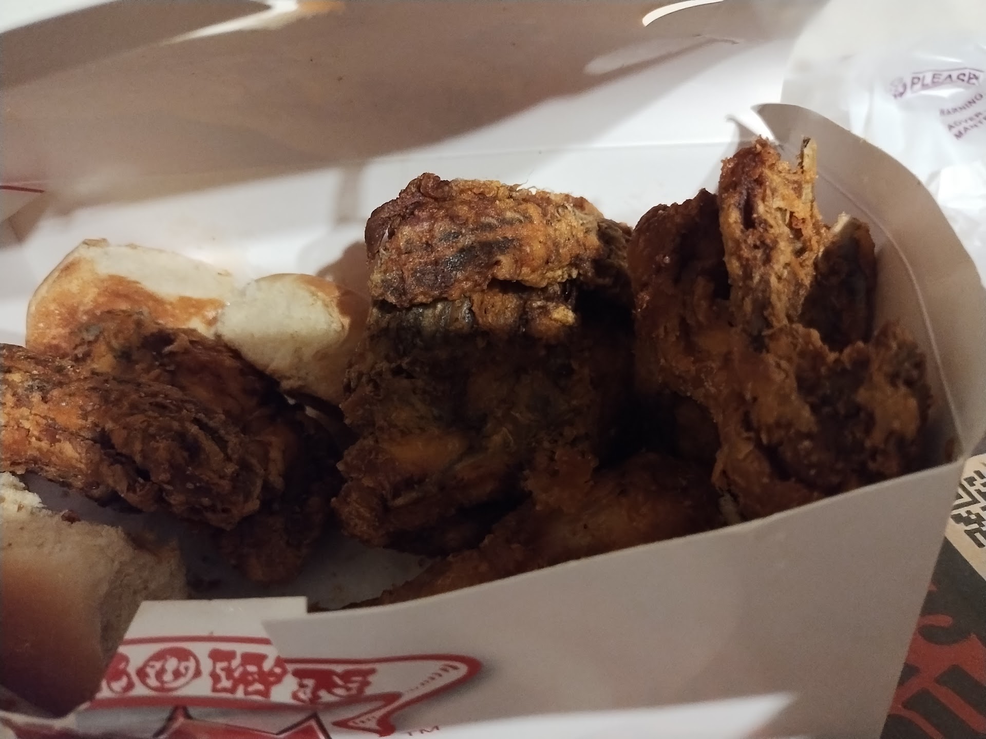 Food preparation has gone down (2 stars from 4). I ordered today and it was mostly in edible. I got the 9 piece box which arrived as 4 wings (under cooked) 2 chicken legs (cooked ok) and 3 chicken breasts that were overcooked to the point of being dried out. Rolls were also hard as bricks. So disappointing!!
