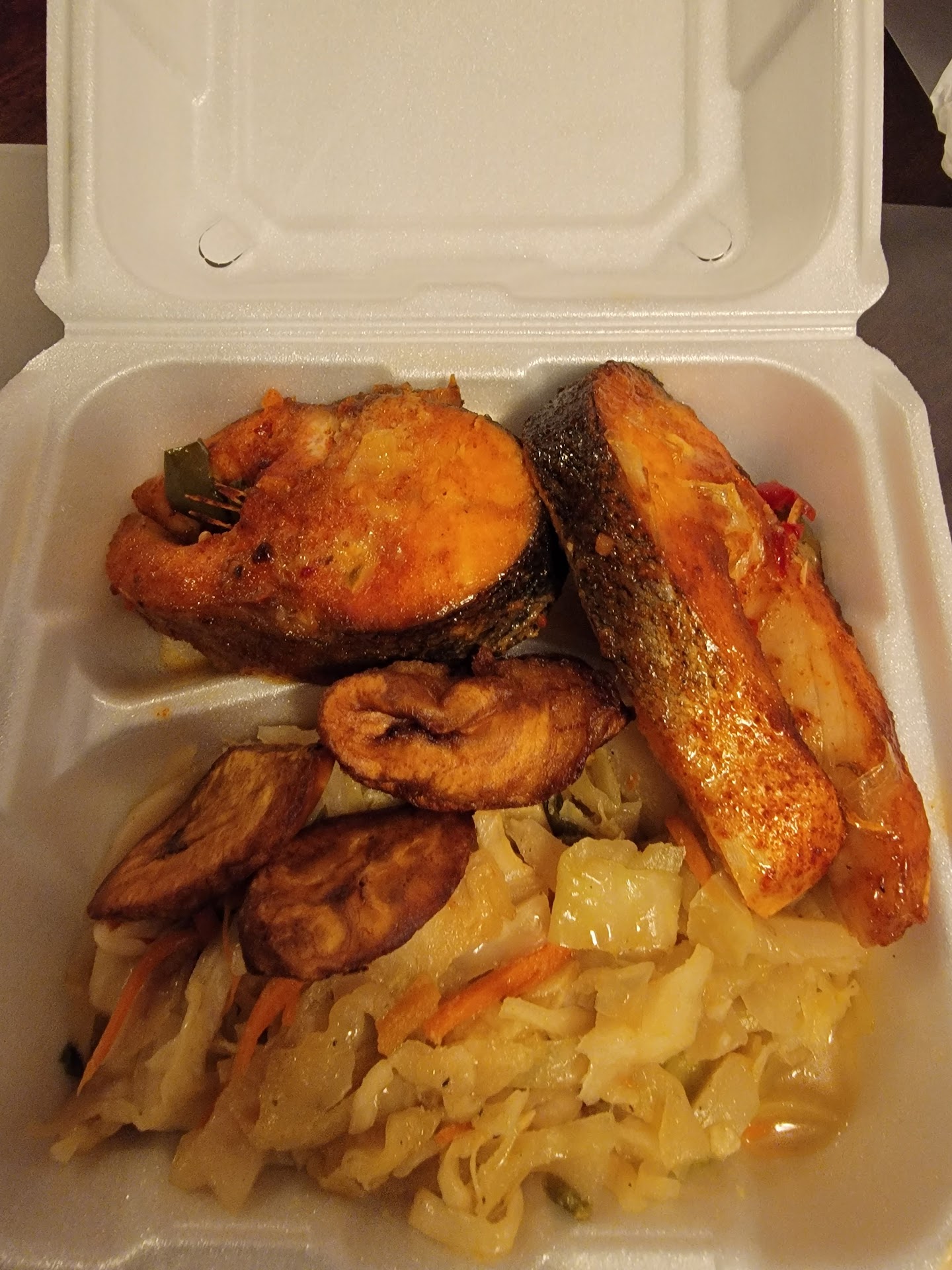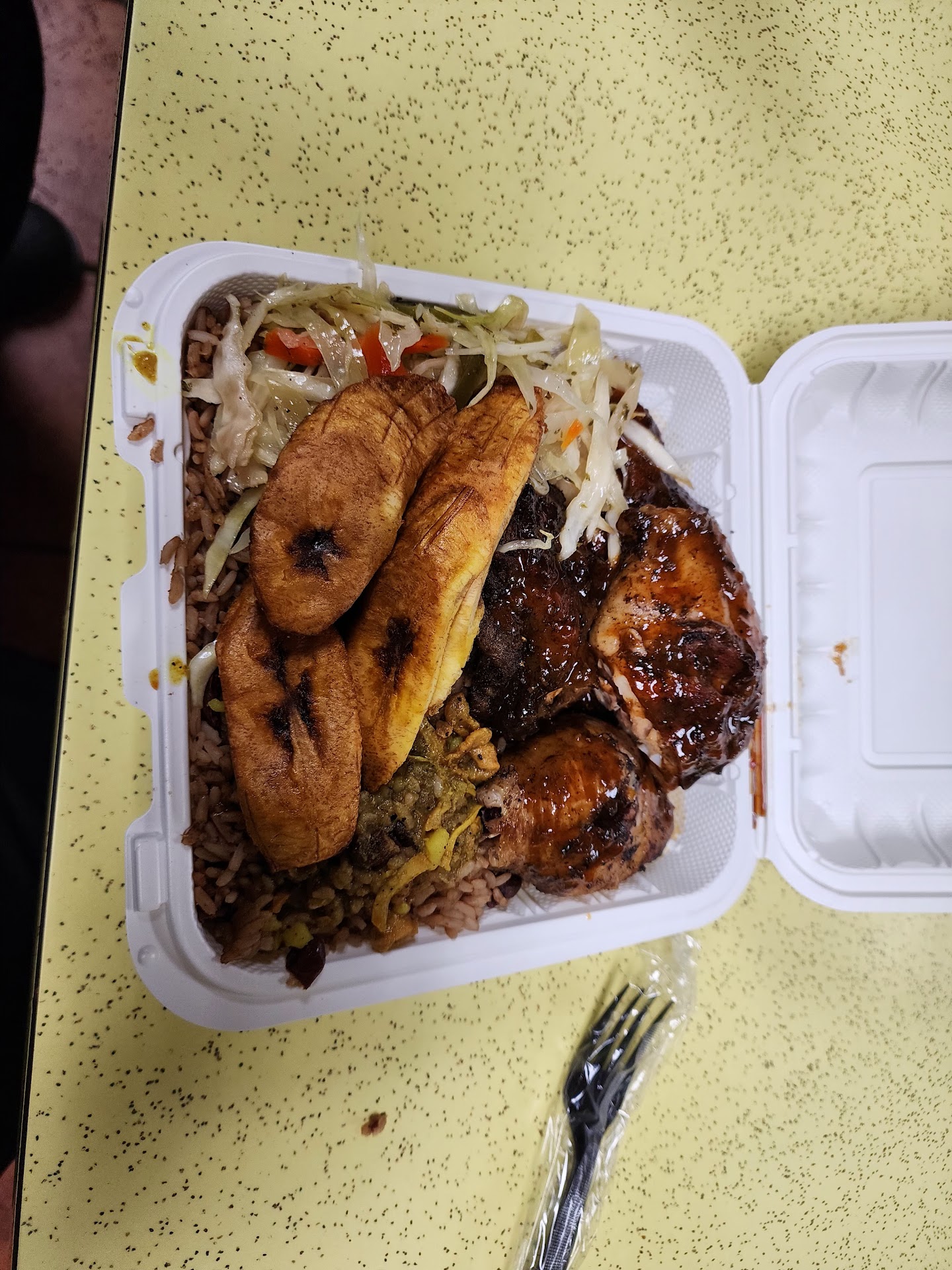 Read moreI've had dinner twice from here,,, the jerk chicken, rice with peas, sweet plantains, and steamed cabbage and a Arizona Iced Tea. I have zero complaints. Everything was seasoned well and they give you plenty. Everything I mentioned was less than $20 dollars and I paid with my debit card, not sure if there's a price difference with cash. Either way, where are you going to eat dinner for less than $20 dollars and it's all cooked from scratch, can't even go get fast food in the equal amount of food they give for that price. The restaurant is very clean, you can smell the food when you go in and there's a variety of food to choose from. Get there early cause if you want oxtail it goes quick, but there's plenty of food to choose from. You will not be disappointed I can assure you that. I highly recommend checking this place out, bring your family and bring your appetite or you will have lunch for the next day. The staff is pleasant, it's clean and nice to get a home cooked meal not some processed garbage from the chain restaurants around here. By the way I ordered a "Large" so that's the size you see in the picture I posted, but they have medium and small so order...