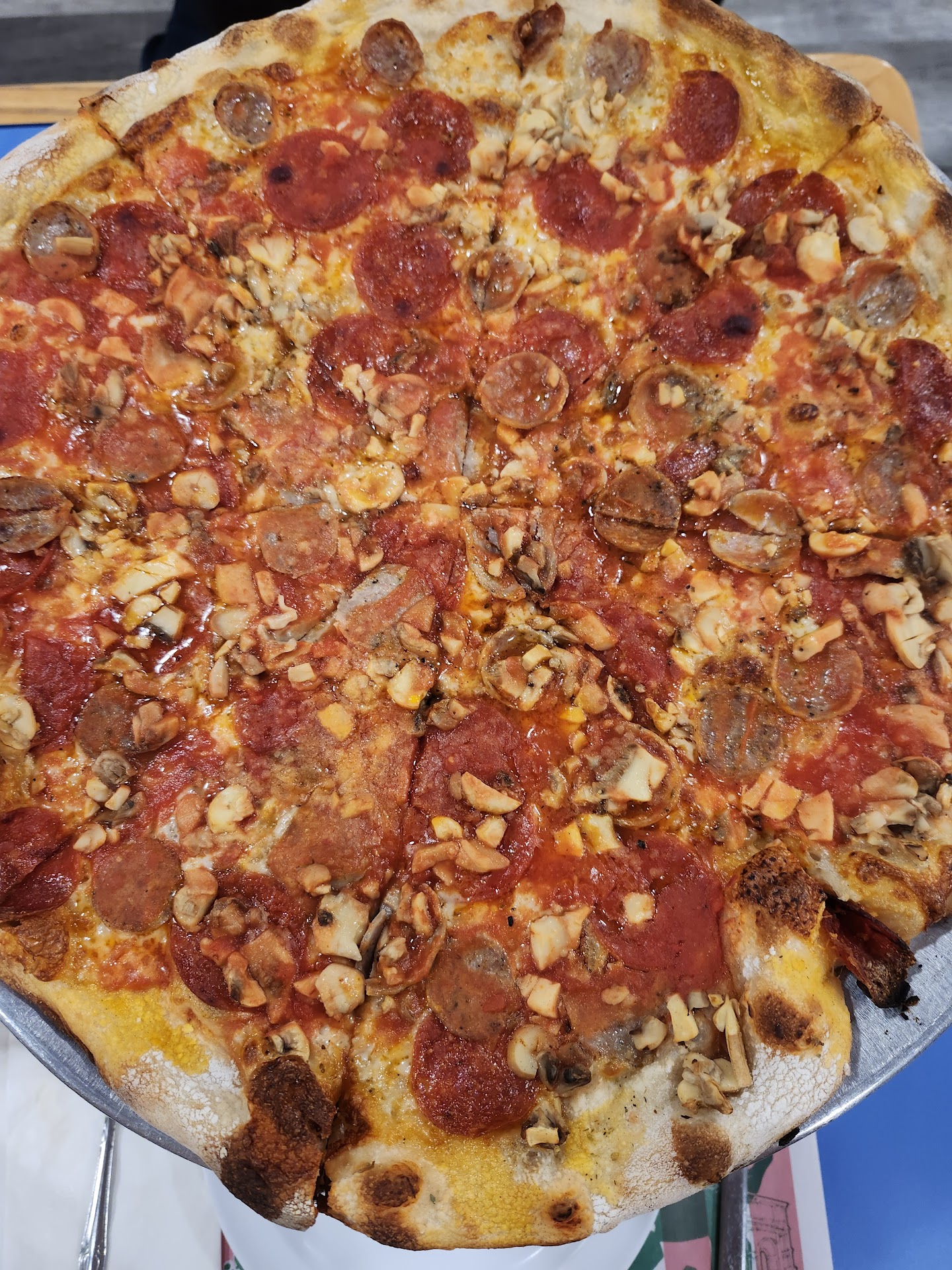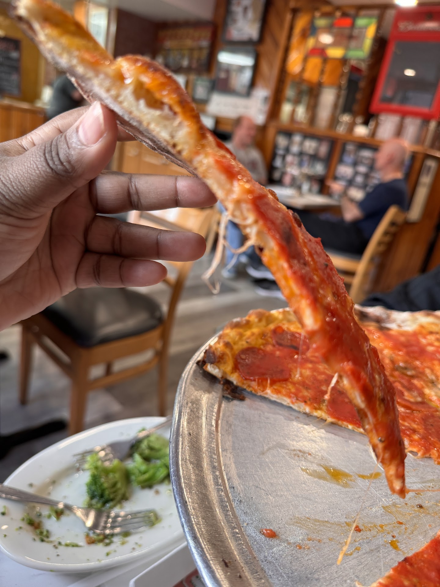 Now, the star of the show. The pizza!!! Ok, first look, it looks incredible. The reverse action of cheese then sauce is genius. The undercarriage was nicely charred. When I took a bite I was shook. The sauce was nicely seasoned. It had a level of sweetness that I prefer in my tomato sauces. There was just enough cheese. The crust was my favorite part. I prefer a THIN crust. It was so thin and crispy I was stunned. The sauce being on top allowed the pizza to not have that “flop” or soggy bottom. It was perfect. The pepperoni wasn’t salty and thinly sliced. I give the pizza a 10/10.