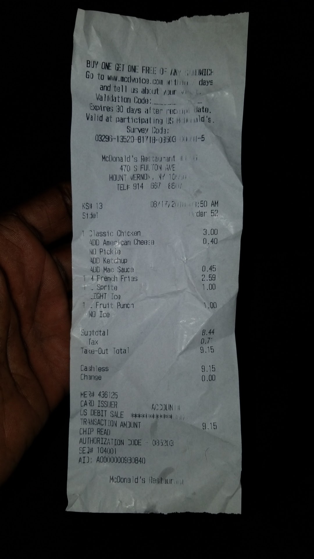 Read moreI want to say that I found out that this is a black-owned McDonald's i in Mount Vernon they just spent so much money in renovating the place rather than teaching the employees customer service how to greet people when you come into McDonald's I go to this McDonald's every morning just to get a cup of coffee I have a half an hour to get to work so I get there by 5 you get to the window nobody says good morning welcome to McDonalds can I help you the way it should be you get to the speaker at the drive-thru and you waiting 5 minutes because nobody recognize that you're there it's really sad to know that this is a black-owned McDonald's I never eat anything from there just coffee I work in a small town called Port Chester right off the 95 on Boston Post Road the service there is unbelievable they recognize you they say good morning and is fast service why can't we have that here in Mount Vernon I am sorry to write this long letter but I'm really disappointed please I hope you read this and and hope that you can...