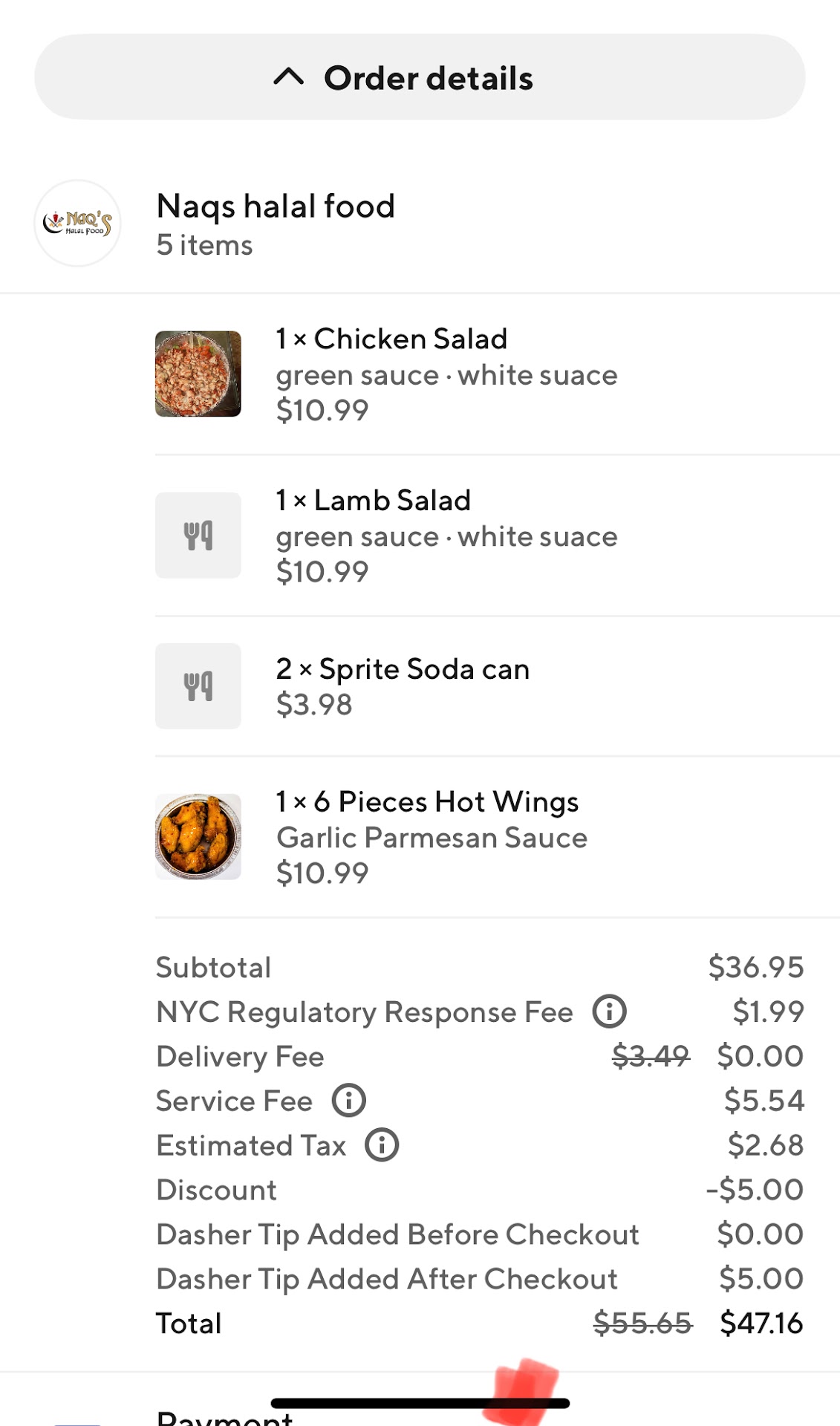 I ordered on door dash overall my order was good. I’d order in store from now on or add special directions. Things I would change in my chicken order I got one flat and the rest drums imma flats person so I needed more flats. Chicken wasn’t fried well enough for me, however the flavor Was good and fresh so doesn’t stop me from ordering again. The chicken also didn’t taste like dirty oil this chicken was fresh. The salad was awesome just to much of a vinegar taste. However the salad to meat ratio was perfect. Food was prepared fast and since my order was close to closing the quality of the food was better than I expected. No one in this area put the olives pickles and corn extra in their salad so this place stands out for that. This place raised my standards for halal in mt Vernon. Definitely...