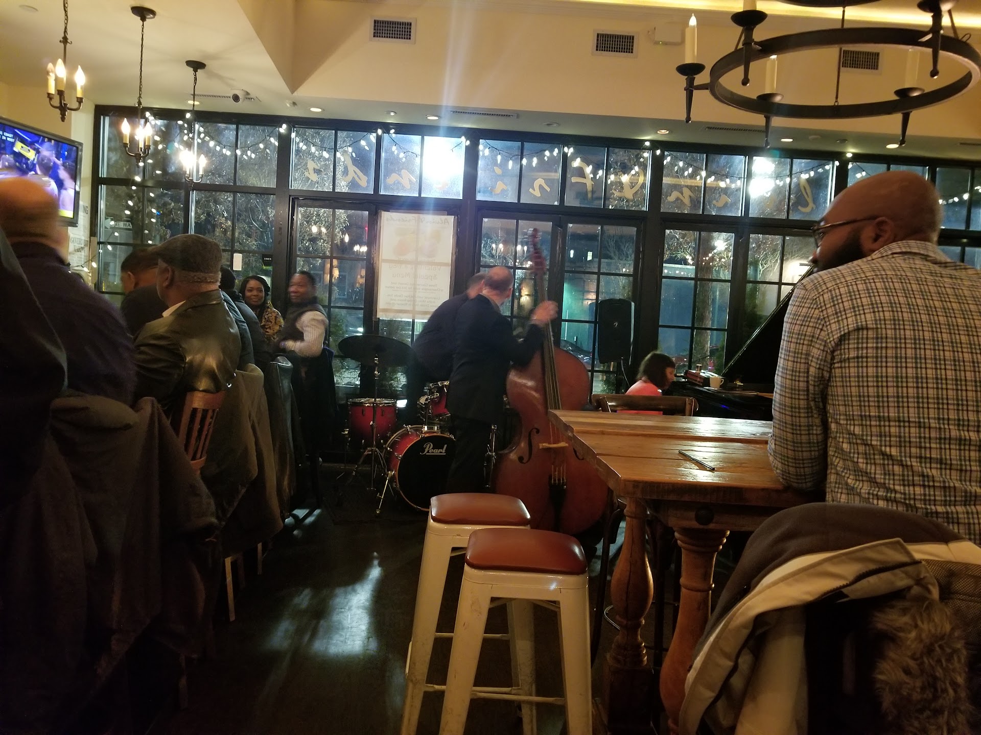 Read moreAlvin & Friends is a beautiful restaurant that has great jazz groups as well as play great jazz while eating when there are no groups. Too bad the food isnt great. I dont know what southern food they're trying to make but none I have ever eaten. They have garlicky calamari with a cucumber sauce or something which is horrible. There's some kind of red sauce which is not marinara and I didnt taste garlic so i cant even explain the taste to you. The salad looked delicious it was supposed to have a ginger dressing which I thought would taste like the Japanese dressing but again it was lacking. I tasted very little ginger and a bitter aftertaste of something. You know that the salad dressing makes the salad so this did not make the salad. It needed salt maybe some vinegar to bump it up. Hubby had the jambalaya which tasted pretty good and I had the chicken roti which was good as well. I got a side of collard greens and I hate when they're cooked til they're soggy/mushy instead of crisp and tasty. They have a little kick but again the flavor was horrible. Southerners know how to make collards do I don't know what cook he has in the kitchen cooking his southern food but soggy greens are not good.😜😜💯 I saw peach cobbler on the menu so you know southern pies are usually the best; again a miss. The peaches were cut in cubes, not cute, and I asked for vanilla ice cream on it which there was something white with blue and pieces of fruit but it didn't taste like vanilla ice cream. Not something the southerners would want to claim trust me. I'm nervous to go back & try other things on the menu but would love to keep going back to listen to good music in the beautiful restaurant. There is beautiful art all over the restaurant & if Alvin did it himself then he has a great talent. The staff are nice, the restaurant is beautiful and the music playing compliments digestion of your food. I'll try again because of...