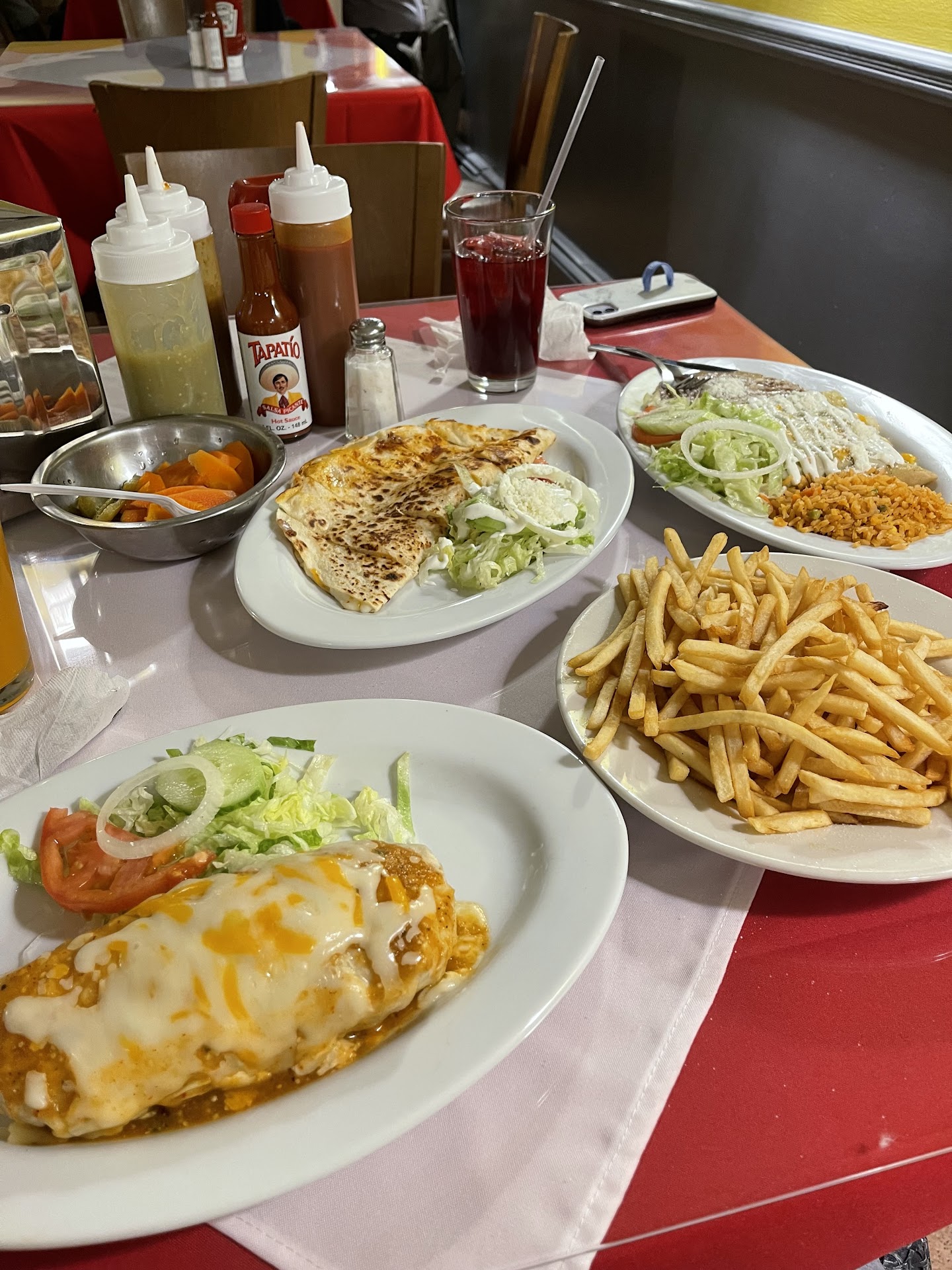 Read moreOnce seated we were given nachos with beans and cheese which we're good. They also provided jalapeños and carrots in vinegar (chiles en vinagre) lets just say it seems like they reuse them. Clearly someone took a bite of one jalapeño and put it back. Maybe because they were not even spicy matter a fact they tasted sweet. I ordered fajitas Fiesta mixed with beef, chicken and shrimp. I only got 3 shrimps which isn't much. The dish did not look pleasing at all the side rice and beans were cold. Rice was undercooked and hard. My partner ordered 3 beef tacos which it seemed like they literally poured a whole bottle of red sauce on them making the tacos cold aside from the tacos being super soggy and falling apart. Also I never experienced having 2 waitresses for one single table...