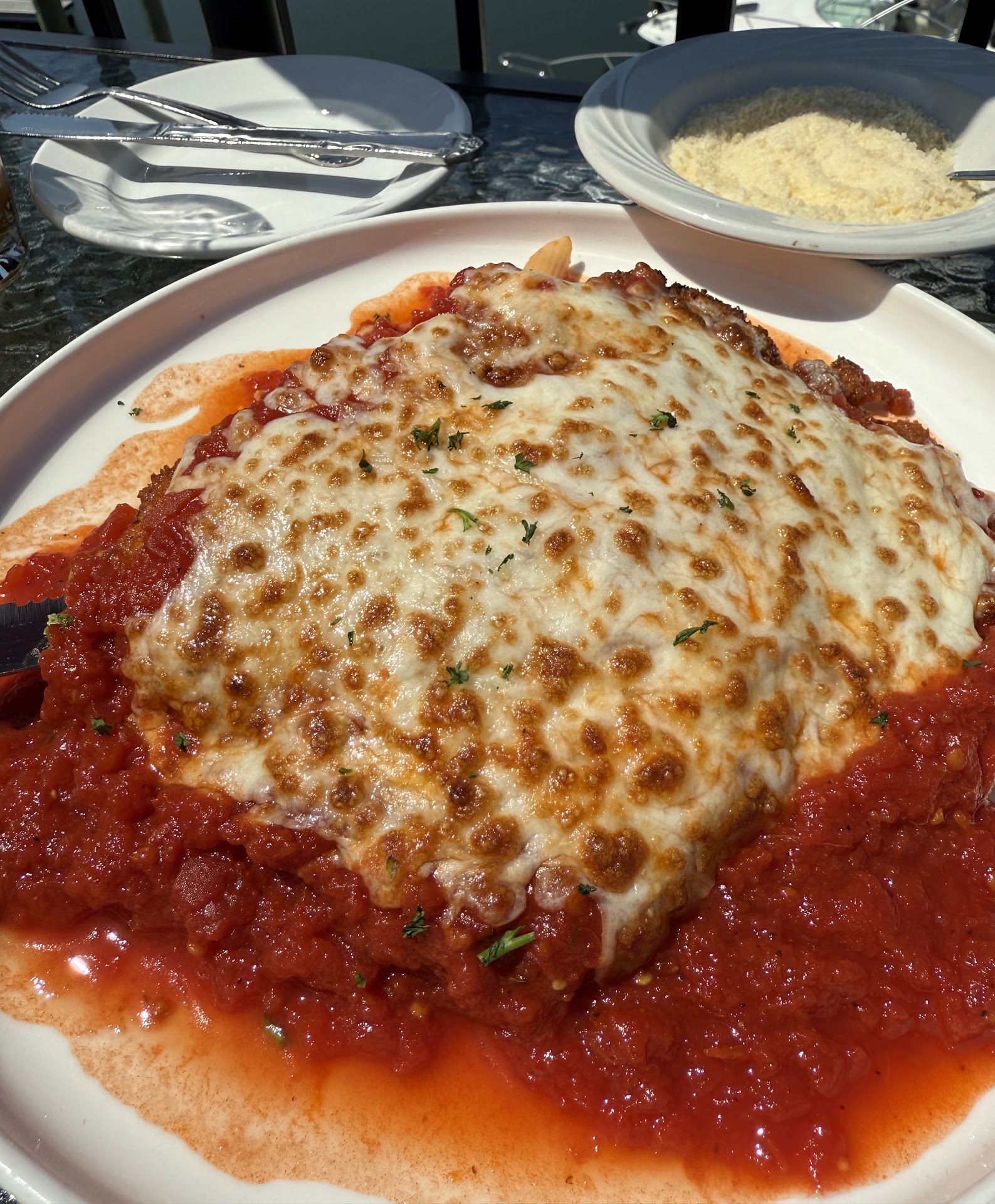 Our waitress, Chiara, was joyful and attentive and helped us with our choices. I started with the clam chowder, followed by the chicken parm over penne. My wife opted for the mussels and washed it down with a salad. Everything was yummy. My wife said that the mussels were the meatiest she's ever had. As for me, my chicken parm was the epitome of 'comfort food.' And by that, I mean it came covered with cheese and sauce and looked like something out of a Star Trek episode ... but it was delicious, and the leftovers came home for a second meal :)