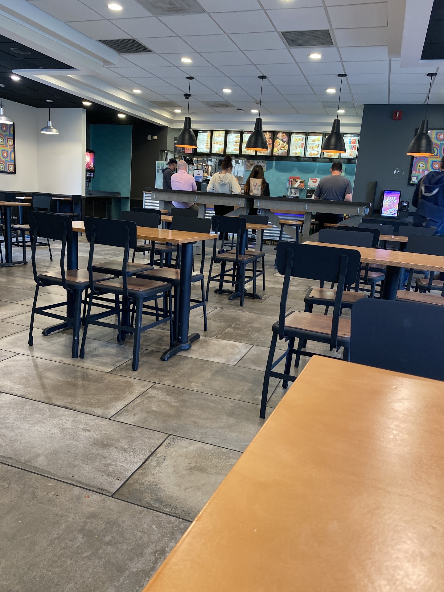 First off it is a pain to drive to this location. The parking lot is really poorly designed and maintained garbage is piled up and food wrappers blow about the lot and pigeons and other vermin pick through the piles of trash . To place your orders inside the restaurant you must use kiosks. However there is no signage and no workers in sight to inform you of the proper way to put an order in so you end up standing there hoping someone comes to the front and notices you. The touchscreens where you place your orders are also disgusting and clearly have not been cleaned for sometime. The bathroom is also locked so you can’t wash your hands before or after your meal. To get the bathroom unlocked you have to call to the ladies in the back and ask them to buzz you in which they do with great reluctance. The restaurant had tables did not appear to wiped down or cleaned. Perhaps the franchisee thinks they can save money by hiring fewer people with these self service kiosks but the complete and utter lack of service as well as the poorly managed and unfriendly dining area has had the opposite effect. They may save money by hiring fewer people but they are also turning people away and losing customers including this reviewer.i won’t be back. As for the food it’s Taco...