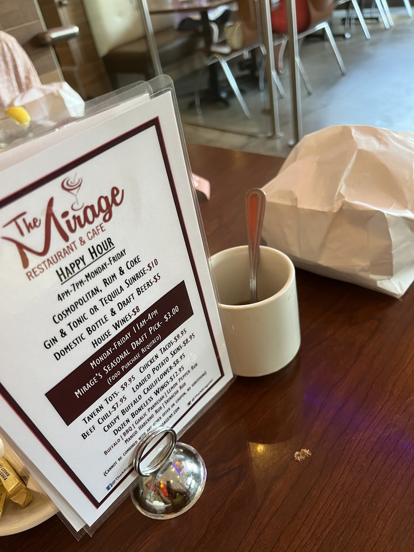 Read moreSo I was looking for something different to eat at work today....looked at the uber app and this place Mirage restaurant & cafe popped up.....reading through their menu it was hard to decide because everything looked good. I ordered the French onion soup and shrimp quesadilla....now I ordered by uber but the restaurant and uber had an issue.....the woman called me and let me know that the reception or something like that was messed up.....so she needed to ask me more information.....to get my order out to me. So I told her Ashley's homestore....and she assured me my order will get here....She was very professional 👏 👌....she kept calling me back letting me know the driver is close by.....I absolutely loved them.....very amazing food and the employees took the time out to make sure I got my lunch....on top of that.....the soup was sooo amazing....omg 😱 the quesadilla delicious 😋.....I will definitely be ordering from them again very very soon.....the soup had lots of onions and cheese...perfectly made. Omg I cant wait to order from them again.. So Thank You Mirage....you will definitely hear...