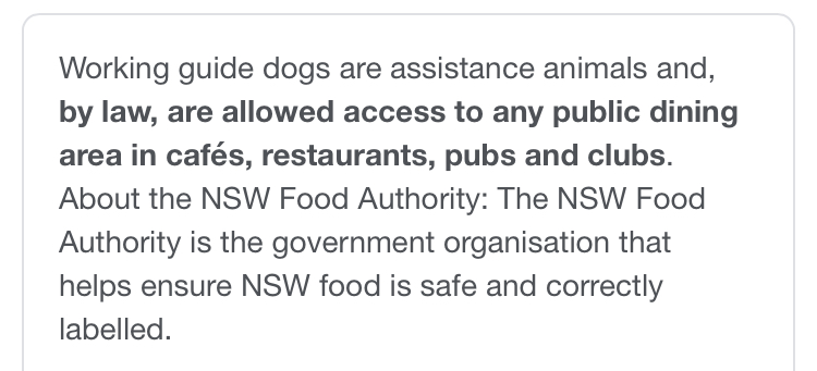 Read moreGood food staff was friendly, but unfortunately they discriminate against service animals, due to customers being uncomfortable as I was told by staff and customers don’t understand, so should I be mistreated or not served due to their lack of compassion and understanding, as a person with a service animal I should never have to explain why I need to bring her. It’s the law and it is discriminatory to ask it is in violation of this law below. So if you have a service animal and have money like everyone else, but not treated fairly . Don’t spend your money at this...