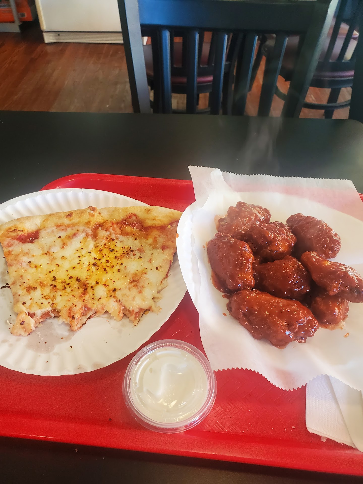 What happened to the service here? The older gentleman and his son, I believe, always went above and beyond to get your order correct and timely. I've been ordering from Grubhub mostly, in recent times, and it warmed my heart to see the owner or his son delivering the order on their own. For the first time, I went in today during lunch time. I was the first one in. I stood at the counter waiting to order a slice, when another customer came in and the guy behind the counter asked him what he wanted to order. The customer was kind enough to mention that I was there first and that I should order. I thanked him and I asked the guy behind the counter for a regular slice. He nodded then proceeded to ask the other customer and they chatted for a while. After they chatted they both looked and pointed at me speaking Spanish, and I gave them an eyebrow. It was strange. It started to get busier, and I noticed people after me started to get their slices. After 5 minutes, I asked another guy behind the counter if my slice was ready. And he said, "you want a slice?" and was ready to stick one in the oven. I asked, "you didn't put it in yet?" He said, "no." I then walked out. They saw me standing there waiting; off and on they would look at me and say words to each other. All the while kept serving others after me. The only thing the other customers had in common was that they all spoke Spanish. If they forgot what I ordered, they should've just asked instead of blatantly ignoring me.