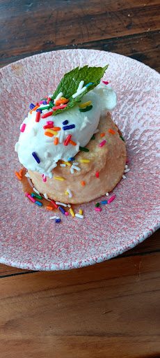 Dessert- Don't get me wrong, it looks GORGEOUS! The cake itself tastes great, however, the artificial sprinkles detract from it imo. Also that's way too much whip cream. A small dollop would've sufficed instead of a mound of it. Again, its pretty, the cake itself is amazing, I think it'd still look good with the caramel, small dollop of whip cream and mint leaf.