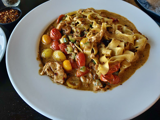 Read more1st anniversary dinner completely ruined. Restaurant was severely understaffed. Allegedly 2 cooks had to go home for family reasons. There were only 2 servers on for both patios. Greet time was 27 yes, 27 minutes before the server even acknowledged we were sitting there. Ordered drinks which were brought to the table by the manager. Server came back right after manager and took our food order. We finished our first round of drinks and then waited 10 mins for the server to resurface so we could ask for waters which took another 17 mins for her to bring. After being there for 2 hours the server offered only a free dessert or round of drinks. We demanded to see the manager and the food finally showed up in the manager's hands to be delivered for us to eat. He offered us half off and we were still displeased. He took care of the food (reminder, we were there for 2 hours at this point) and we asked for it to be boxed togo. He offered to have it delivered to the room and we thanked him. He apologized and said there was a technology error that caused the wait (translation, the server never rang in our order). My wife said "I thought it was a staffing issue" the manager backpedaling acknowledged that it was both. 10 mins later someone knocks on the door. I open it and they say "here's your pizza." I thank him but also noted that the young man delivering it had on sneakers, shorts, a sleeveless Tshirt and was holding a football helmet in his other hand. You can't make this stuff up. Thankfully we had the forethought to bring disposable silverware with us from home otherwise my wife would have been forced to eat her overcooked pasta with her bare hands. The mushroom pizza toppings were delicious although the bottom of the crust was entirely burnt and inedible. My wife had also ordered a side salad which we are still waiting for. This was the first night of our 1st anniversary vacation. We won't be wasting our time with them for the rest...