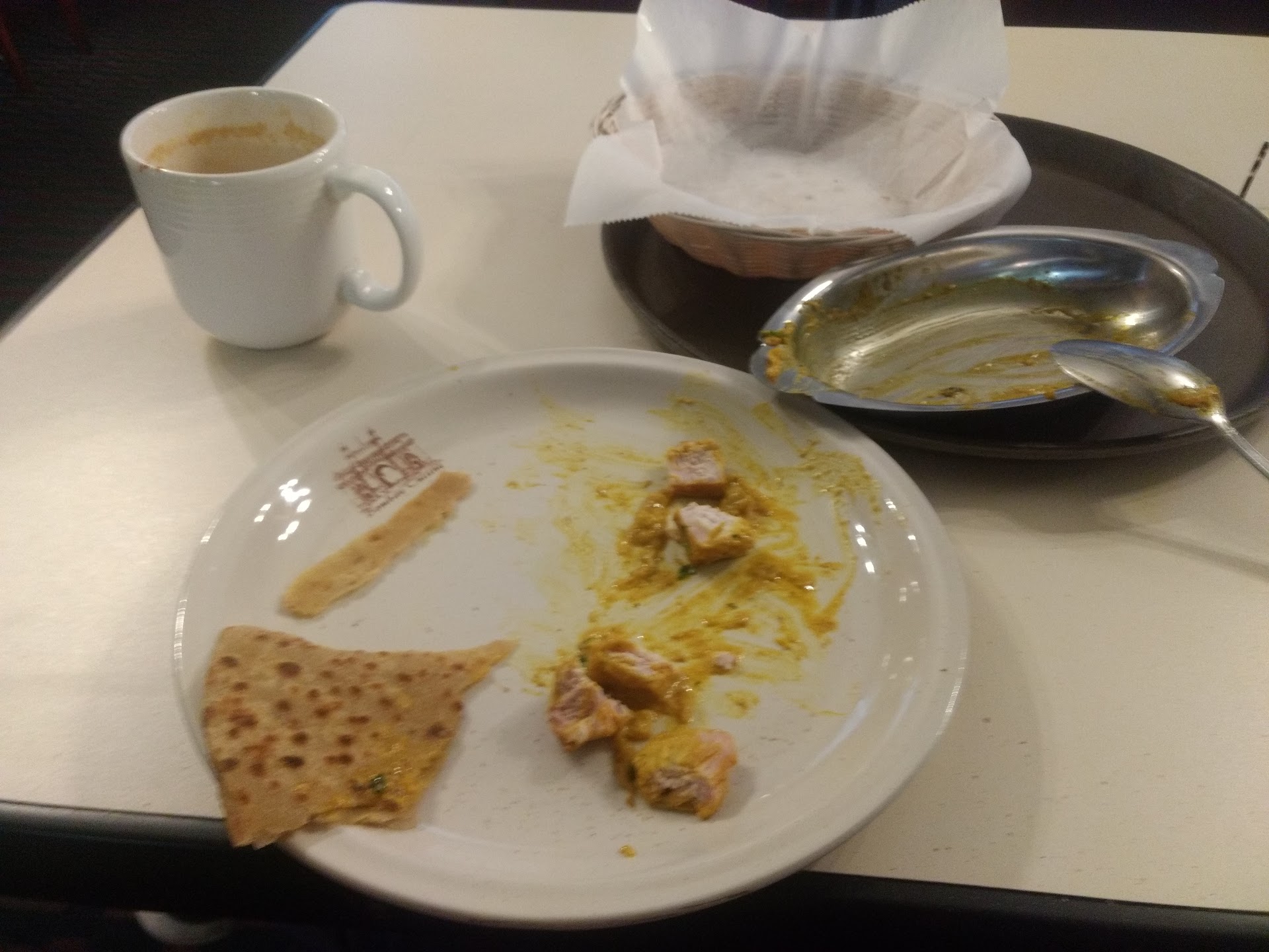 I was greeted twice, both times by lovely and pleasant women. In fact I had a really nice conversation with Leelah and she made me feel very at home. I ordered the chicken Tikka only because they had no palak paneer. I also ordered a spiced hot tea and a paratha. My meal was delicious. The buffet isn't served during the winter months, if you were wondering lol. The spices were right and the fresh cilantro on top along with the chunks of onions in the sauce just added the right finish. I'm happy to say I'll be a repeat customer.