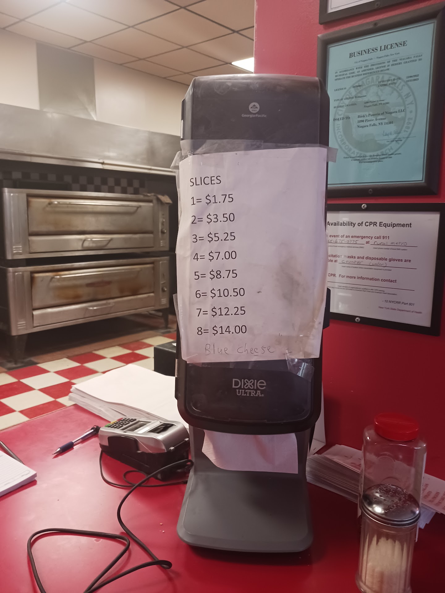 I've been to all the other local pizzerias. Still, bucks is the best pizza in town! And the least expensive! Best pizza in niagara falls , Rib dinners are awesome, Chicken wings and chicken fingers are great, the salads are huge and delicious, and they have a $5 lunch special that you can't beat...3 slices and a drink for $5, fast delivery, and all of the slices are made fresh in front of you. Honey garlic sauce, top of the line best in the city!💯 Open from 11:00 a.m. to 11:00 p.m. 6 days a week. Sorry guys were closed on Tuesday mm however we are open for Monday night football and all the Sunday games