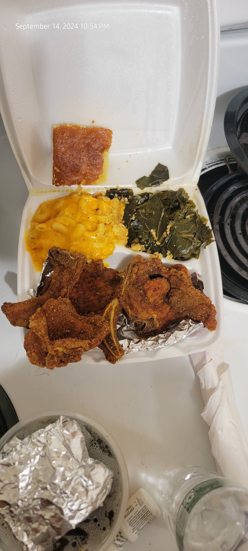 Read moreI wanted this place to be so good. Having more than the couple soul restaurants would've been nice but man this food made me sad. Pork chops with 1/4 inch thick. Like paper. Exact texture of old beef jerky. That seasoning on a decent piece of meat would've been awesome. Quality over quantity. The mac was honestly pretty good i have to say. Collards were bland. Corn bread dry like the sahara desert. Dessert was just disgusting like bad bad. I hope they can do better and maybe it was a fluke. But im not brave...