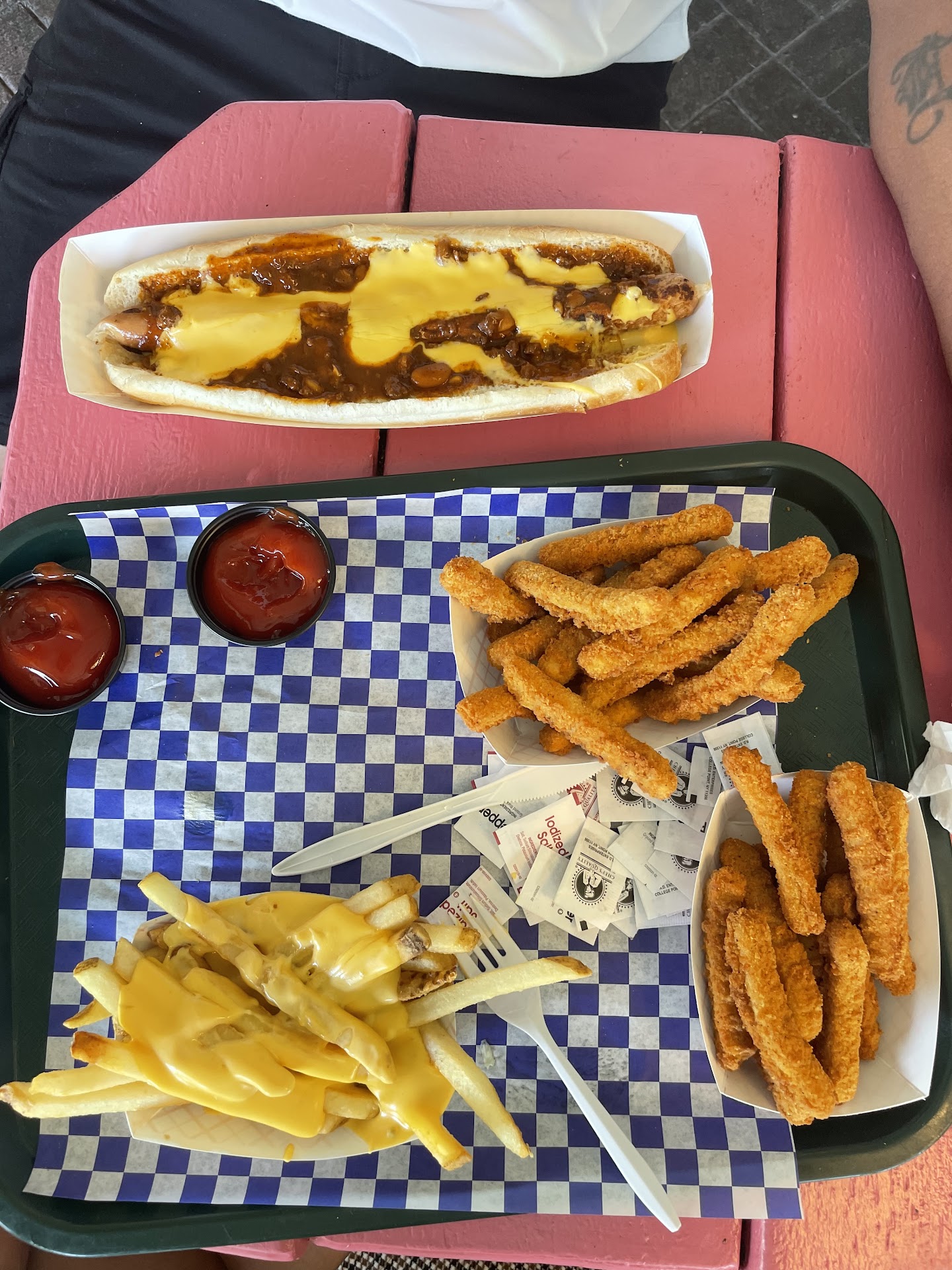 Now, let's talk about the food. I ordered the classic hot dog, and while it was cooked adequately, it didn’t quite blow me away. It had a decent flavor, but I've had better hot dogs elsewhere. The toppings were plentiful, which is a plus, but I felt they could’ve used a bit more creativity. Perhaps a signature sauce or unique topping would elevate the experience.