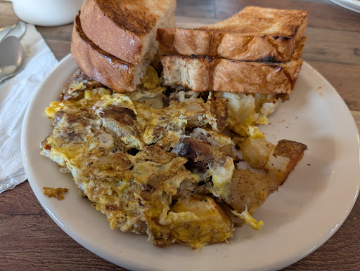 The coffee and the homemade toast was good. The potatoes were dry, stale and bland. The burrito was bland but ok. All-in-all, not worth a 1-hour wait for food. We also had to keep asking for things like coffee refills and a fork missing from the serving set. We ended up leaving more food on the plate than we ate after waiting over an hour for it.