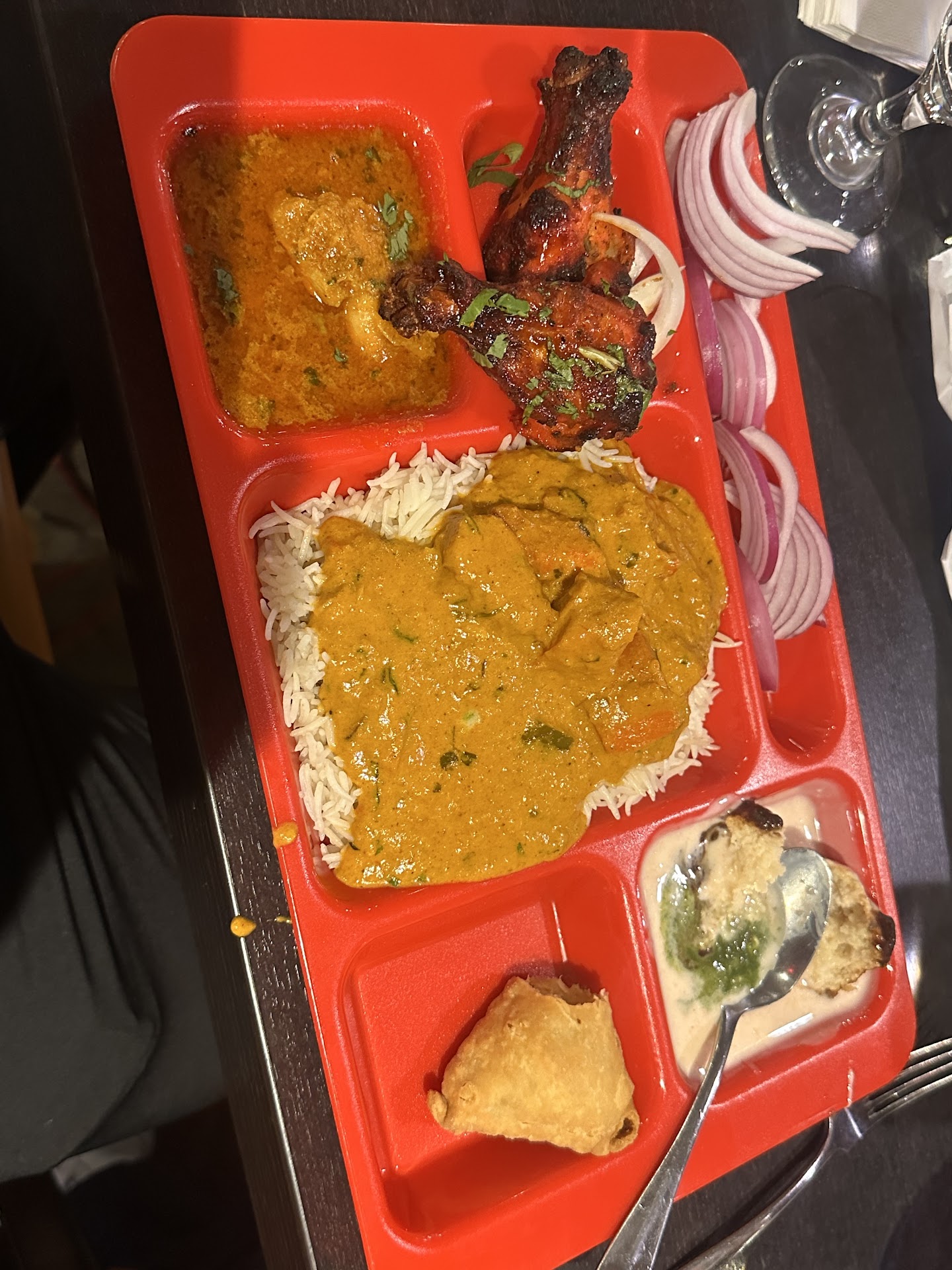 Read moreFood It was difficult to capture a photo to show what makes the food appealing. The lunch tray aesthetic and dull colors give the impression that the food tastes bland, when in fact it is extremely flavorful thanks to the traditional range of Indian spices. Due to the buffet-style, I would advise first-time visitors to start off with a tray that samples a bit of everything. A typical scoop that does not aim to get more of the sauce or its contents will get the best balance of flavor and substance. Be advised that some of the sauces (reddish-color) are hot. If going with another person, then consider sharing the large spherical items from the salad section. We only weren't fond of the 2 variants of round spheres (one a potato, one in a white sauce), so grab at most one of each if you are a picky eater. Ultimately, it should be easy to be full here, and the food is on the level of home cooking. Not exceptional, but greatly appreciated if you are hungry.