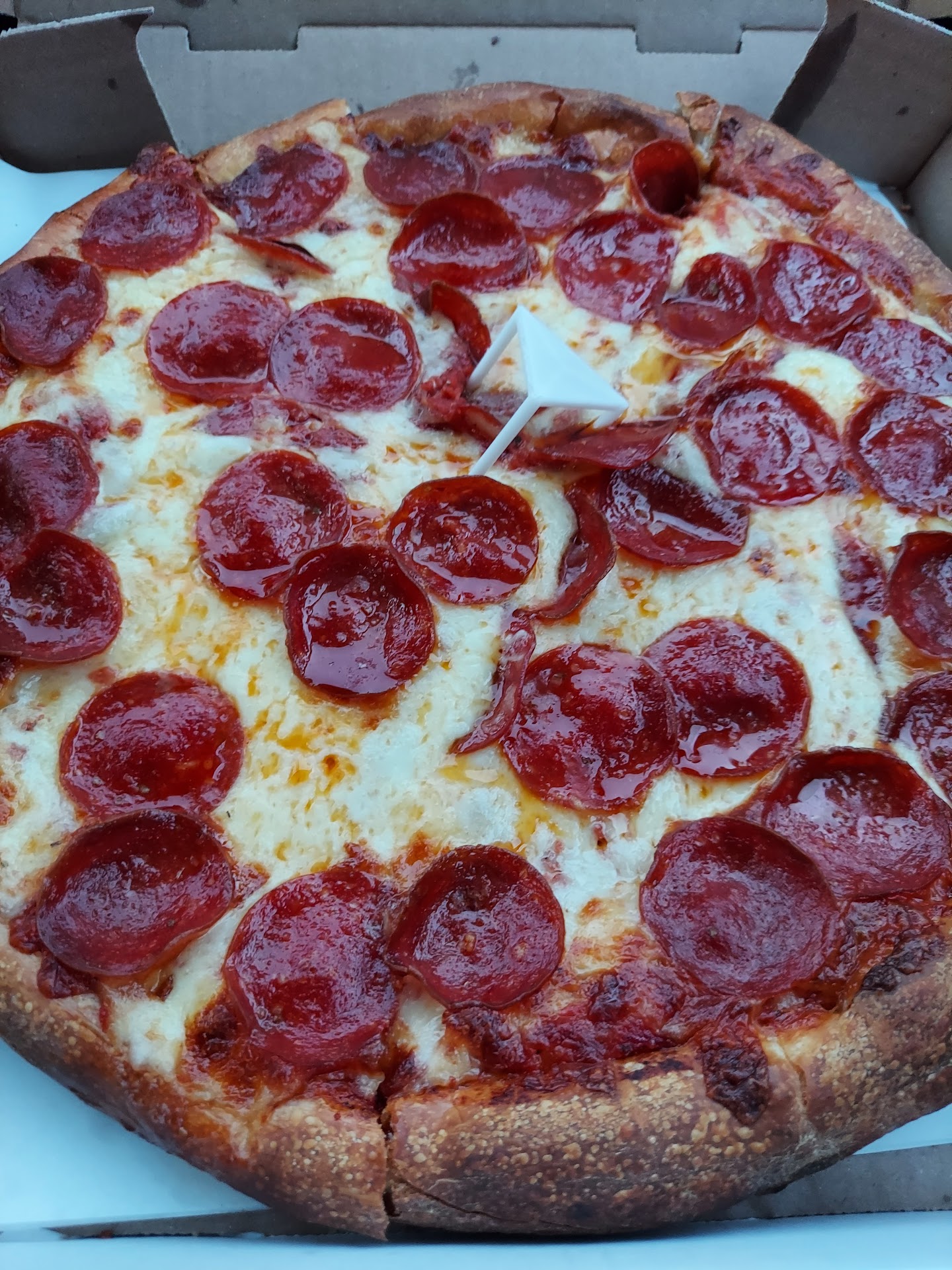 Read moreI am not attempting to badly tarnish the name of this place by any means or rain on everyone’s parade, but I fail to see the hype and admiration after many visits to this place thinking that I went here on a bad day or a day with newly hired people. The pizza is mediocre at best and tastes “strange” sometimes. When it’s fresh out of the oven the crust completely detaches itself from the cheese & toppings. When it’s cooled and the cheese isn’t as hot, it still isn’t really fused or baked onto the crust and I can peel it off completely like a sort of skin. The parking lot has no painted lines, has potholes, and is always a nightmare pulling in and out of. Today was the last straw though, I willingly put in money with my coworkers and tried it again for the first time in almost 5 years. 2 hours later my stomach pain has me confined to the bathroom in a cold sweat and unable to stand, this was the only thing I ate today…. Enough is enough, never returning. To clarify, literally no other pizza I've eaten in my life has caused...