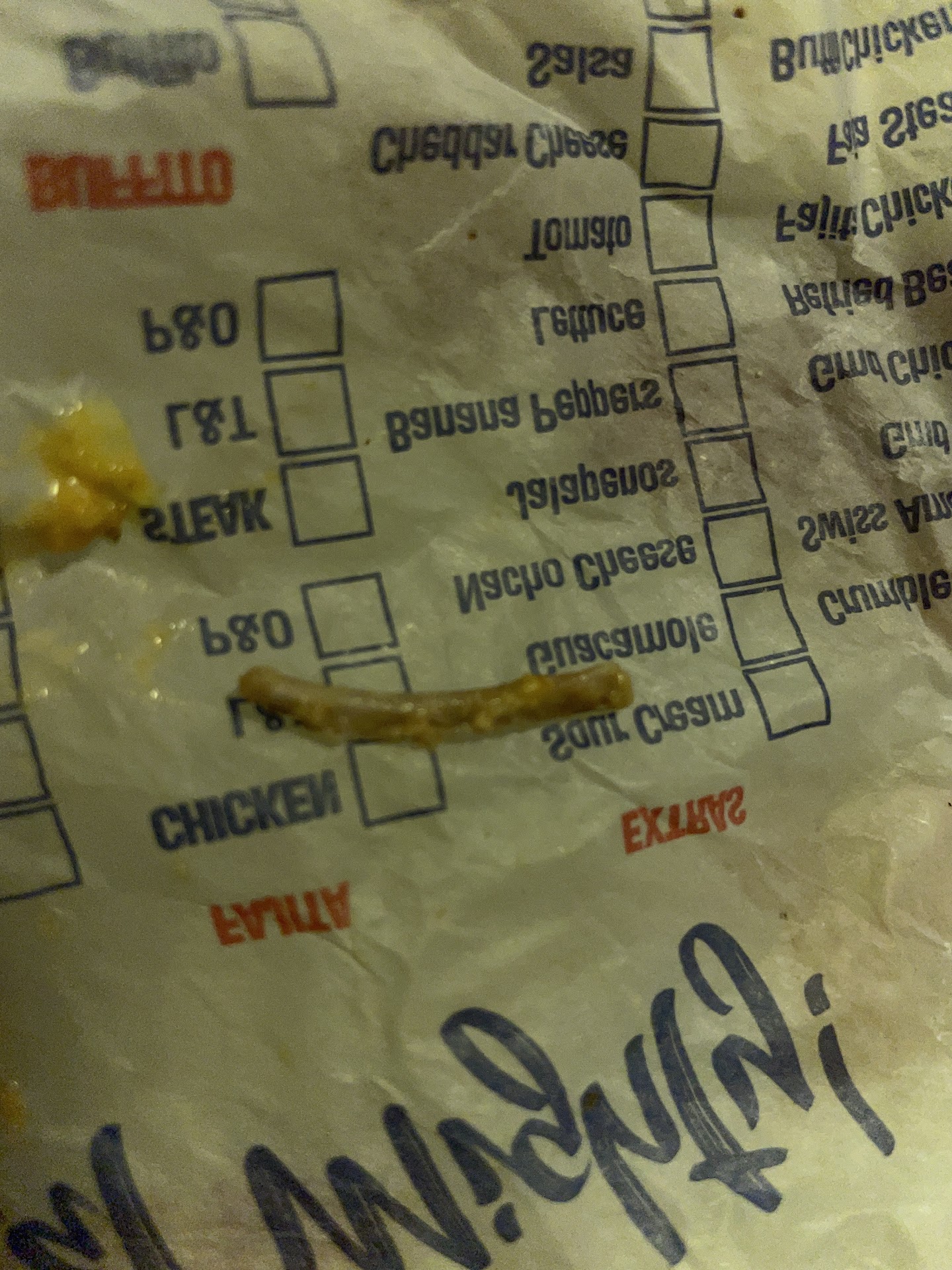 Read moreI went through the drive-thru on 1/27/2019 at 8:19:40 I got home and relized they forgot some of more order (a bag of Nachos). So i wasn't to upset. What really got my attention was when i went to dip my Quizzadla into my side of sour cream this narley pube was hanging out of my cup of sour cream. Now I called and spoke to who I assume was the manager. I told her the above story and she goes...."That's impossible". Well see I have pubes but they usually are not at my dinner table. So yes it is possible see I know what a pube looks like and it is stareing me right in the eye. She said to bring my food back and she will refund me for the sour cream...i am sorry I want a full refund and she said bring it all back and she will give me money back. I want to get the sour cream tested one because this ruined my dinner and I am furious and two I want to prove how possible it is. Don't eat the pubes at 537 division...