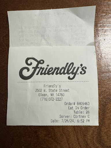 Read moreI've always loved Friendly's!! Love the kids menu for variety as well as prices. I love the friendly staff and the fact that they still pass out activity papers and crayons to children. The food is reasonably priced and portioned and I don't think I've ever eaten anything there that I didn't love! And then of course there is the matter of dessert! So many yummy, rich, delicious choices!! The only small complaint I do have is that somewhat recently they installed a little tablet on a stand at each table on which you can order if you prefer and on which you can pay if you prefer...and all that is great. BUT there are also games you can play if you want and they are NOT free. They automatically get added to your bill and it's a distraction if you have a child dining with you and you don't want them to play the games but they keep asking. It's also very possible for them to play without your permission if you are unaware that there are games on it. But that is a very small downside when the food is so delicious and the atmosphere is...