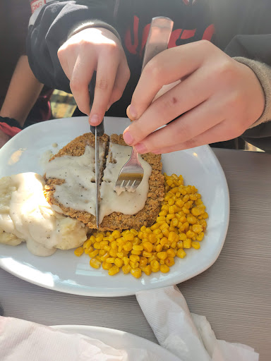 Read moreThey showed no concept of atmosphere or courtesy, and the food tasted like it was reheated, not fresh. We entered and hostess Emily sat us on a booth against the wall, which I couldn't even fit into so I said, "let's grab this one not against the wall," where I fit right in Emily snapped back, "They're all the same size!" And walked off. Cayden was a decent server, attentive, and reasonably personable, but relayed terrible cynicism about working there, so that dampened the mood worse. We ordered a sizzler hotplate and the steak tasted like it was reheated in a microwave cause it was rubbery as a car tire. I got pancakes that were rubbery and nearly cold. Eggs benedict I ordered had its problems, the hollandaise sauce was far too overcooked, broken down and watery, the bread item it was served on was not crisp and fresh but chewy. Just has all the signs of carelessly tossing in a microwave and handing it to the server with no care to the finished product. I've been in foodservice since 1995, and love to cook at home fresh, hot meals (including hollandaise from scratch) every day. I will NOT be back to this location. It needs a manager who can lead from the front to fix the attitudes and cook decent food with taste and...