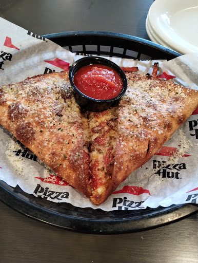 Excellent service, inside. There are tons of topping for the pizza. The jalapeños were of a very high quality!! Definitely recommend visiting the pizza hut while it's still new and the employees are on the ball! Dined-in, stuffed crust... way more cheese in the crust that I remember... the cups of extra dipping sauce became much smaller, and they charge u for them now. But it was worth every penny to visit the local pizza hut again, I think everyone has missed the place since covid. It was super busy, but we were seated right away and eating within 20 minutes of sitting down. All the specials and deals were removed from the menu, but they still have them, u just have to ask. When we walked in, not 1 minutes had passed and 3 servers had greeted us and let us know someone would be right with us as another was already cleaning out booth off, she even wiped the excess moisture off the table so we didn't get wet forearms while it dried. Our waitress was very attentive and showed up perfectly timed to not become annoying. LG pizza with 3 toppings and bread sticks came to just over $30... pricey (like every place these days), but perfect...