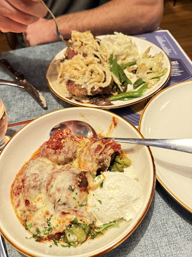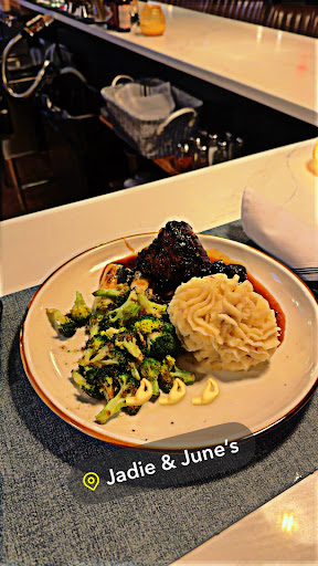 Read moreDate night at Kevin Gentile’s new restaurant Jadie and Junes was absolutely delicious! Strip steak with veg and mashed potatoes. We also had fried calamari, meatballs and Utica Greens. The Steak was so tender we could cut it with a butter knife. The sauce on top was reminiscent of Gentile’s restaurant on Burnet. Calamari was perfect. Not chewy. Could have had more balsamic drizzle. I love that stuff. Utica greens were good. Not too spicy since he used banana pepper rings instead of Italian hot peppers. We will be back. Half the restaurant ordered clam sauce. I’m thinking that is a fav too. Only negs water glasses are small and bread...