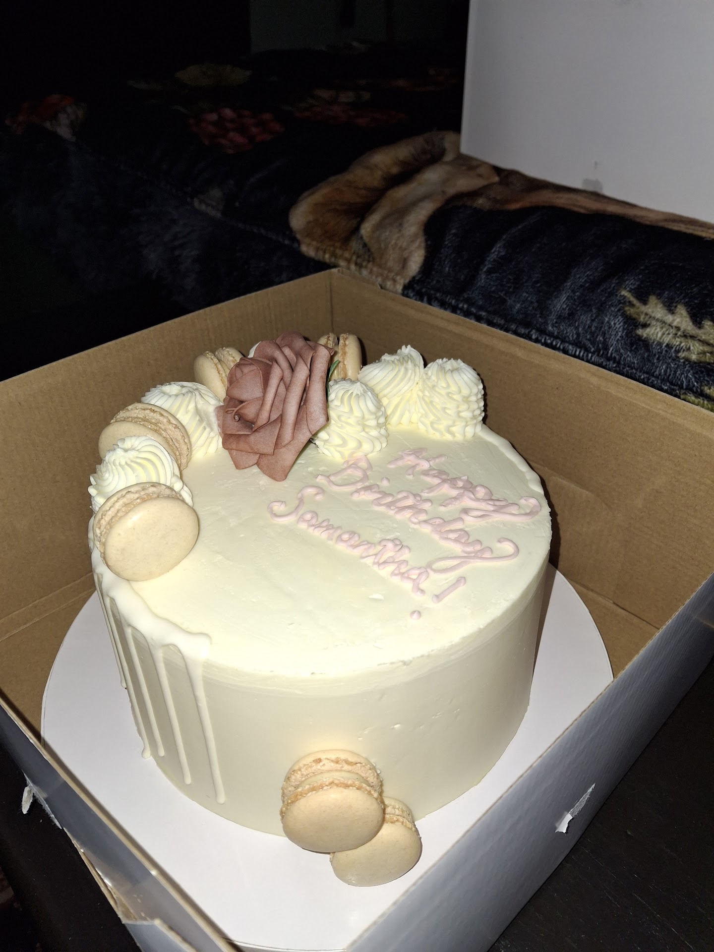 Read moreAbsolutely recommend and will definitely order from King's Kakery again! My first experience with them was wonderful in every way. I contacted them first through Facebook followed by email conversation to order my sister's milestone birthday cake - they were very quick to respond, very friendly and helpful, and able to fill my order with only a couple days lead time. My request began with dark chocolate ganache as the most important component, on a dark fudgy cake with simple decoration including gold accents and writing, and from that they created a masterpiece that tasted phenomenal. My photo doesn't do it justice & didn't capture the golden icing drip design on the opposite side, but the cake was tall and lovely and drew many compliments from staff and other patrons of the restaurant where we held the party. And those of us lucky enough to taste it, LOVED it! Thanks to Allison & crew for the best birthday cake I could...