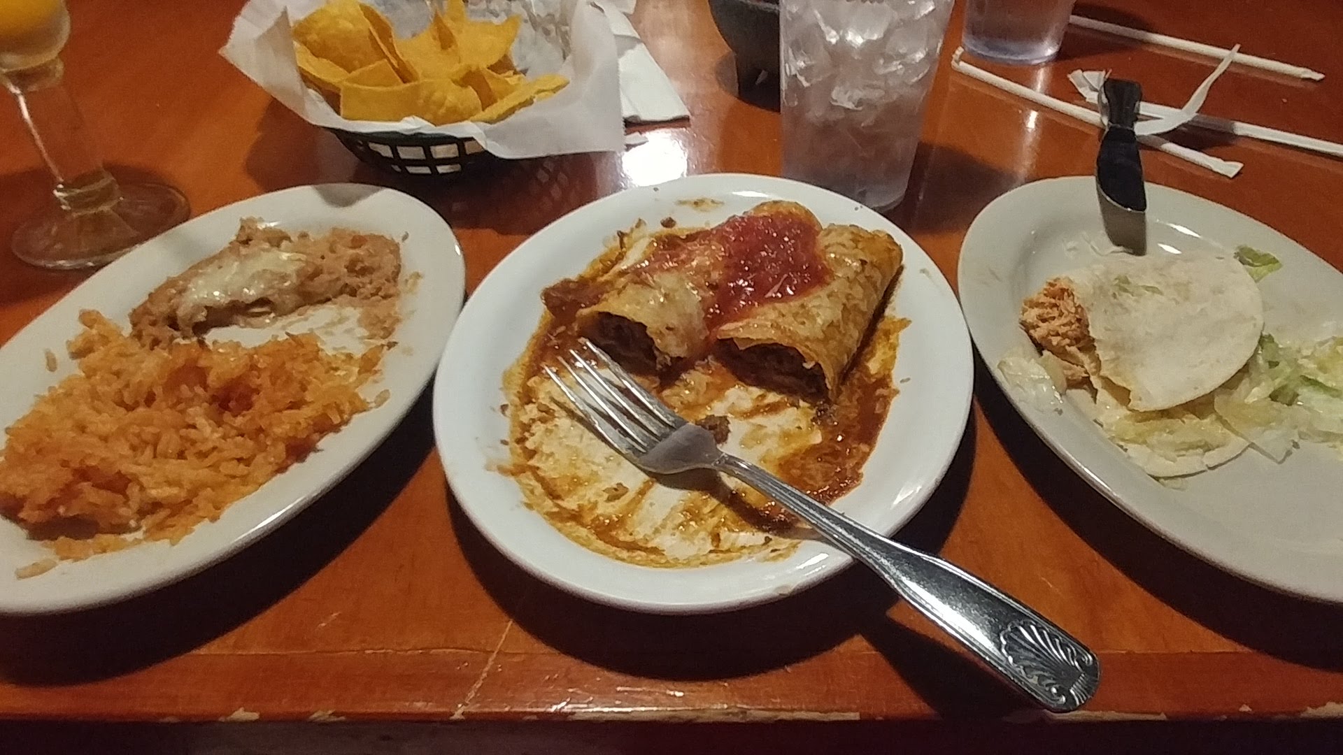 Read moresince moving here been looking for traditional and authentic Mexican food, this is not it. if you're looking for Tex-Mex, I guess that would be more along the lines of what this is. my son and I ordered different menu items so that we could taste different items. I had the carnitas street tacos, which came with salsa, cilantro, onions and a side of rice and beans. my son had the chichimangs, which isn't mexican at all. we also ordered one tamale and a plain order of churros, without the syrup and icecream. my street tacos left a lot to be desired. the tortillas were hard, cold and dry. I had to drink plenty of ice tea because they were so dry. the carnitas themselves were dried out, salty and dark brown which indicates the meat was not fresh.not edible by my standards. the rice and beans were piping hot and the rice dried out, indication of being microwaved. the beans and rice had no flavor whatsoever. my sons chichimangs, he said were fine, I took one bite, and if your looking for americanized mexican food that would be it. he liked it, but said its not mexican, but it was good. the tamale masa was hard as a rock, we even had a hard time putting our fork through it. tamale masa should be soft. they put a red sauce on top, which tasted of a canned enchilada sauce, and melted cheese, I don't know why, it didnt mention that on the menu, maybe to try and soften and help with the dryness of the tamale. the churros were greasy and looked old, not fresh. all in all very dissatisfied and disappointed. this is my first time, and will definitely our last. this is NOT traditional mexican food, but if you dont know what real Mexican food is, you may like this place. This is not authentic by any means, but I must say the waiter we had was...