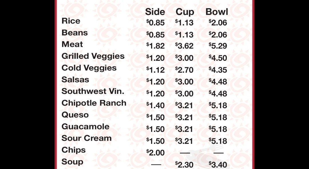 Read moreWe got there, there was about 12-15 people in line. First off the food prep counter was disgusting, old food all over it and opened lids with pieces of food that fell in the container from the one next to it. I saw 6 employees, 2 by the register, one making an online order i believe because it was on paper and was nobody's in line, one mixing and restocking rice, 2 walking around looking confused. Than the girl mixing the rice, start waiting on the next Customer, finally one of the confused employees caught a clue and waited on the next Customer, but you could tell he didn't know what he was doing.. Than one of the guys by the register yelled "Just to let everybody know, we won't have any Queso for a bit, I asked, how long is a bit? He went in the backroom, came back and said, the cook said at lease an hour or so, i asked, you mean you no longer make it a head of time? He said, i don't think so... At that point, most the customers were already frustrated and more than half of us walked out. I was in line for at lease 15 minutes already and i don't know how the ones in front of me have been waiting, but on our way out one guy said it was a wasted half hour with no food. The Place used to be good but the last couple times have been a let down. We left that one drive to ththe one in Fulton, left that one too without food. We were the one only ones in there. The girl started making our order, the food looked old like it had been there for awhile. She told us it was all fresh. The finally straw was i asked for Bacon on my Nachos she took the ladle out of the Bacon container full of Grease pulled it on the Nachos, i said NOPE WE ARE DONE Disgusting i wanted Bacon not Grease and We walked out, Done Last time for us, it's too bad the place...