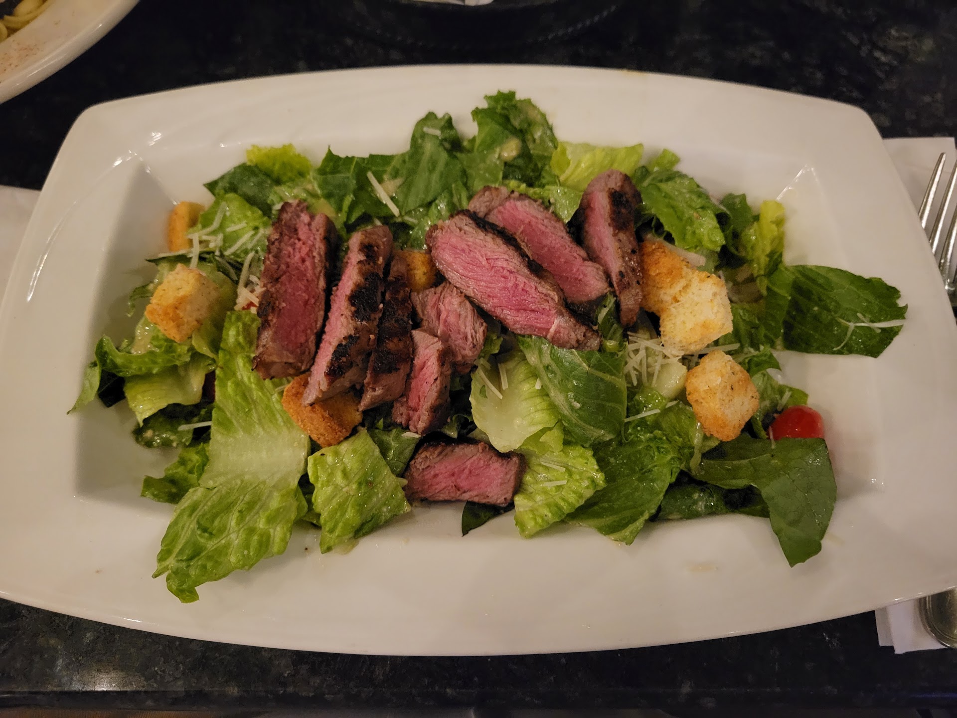 One thing I will say is the menu needed some clarification. My mom ordered the Steak Oscar. Direct quote from the menu: “filet mignon medallions, grilled asparagus, lobster meat, bernaise sauce & roasted garlic potatoes” The plate arrived and we searched for the lobster meat only to find small chunks in the sauce (which my mom had asked for on the side for dietary reasons). I realize this is a small detail, but for someone with dietary restrictions, details are important. If the menu had said there was a lobster bernaise sauce, it would have been much clearer.