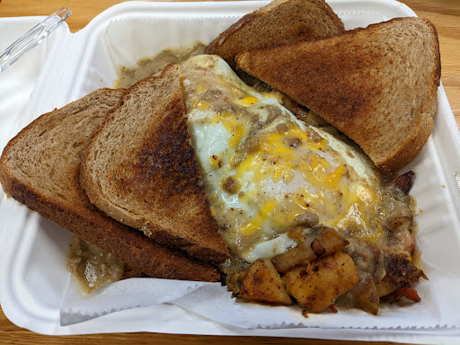 A friend wanted to take another friend there for his birthday breakfast, and I was being stashed there ahead of time as a surprise. I was not acknowledged when I walked in, and a party who came in after me was seated before me. I made eye contact with the girl at the counter (who had auburn hair and a bad lily tattoo on her chest that looked like she drew it on herself with a Sharpie) and she stayed at the opposite end of the counter. I often have a hard time walking in the morning because of a neuromuscular issue, and she watched me limp all the way down to the other end of the counter (which goes most of the length of the restaurant). So now not only do we have a bad waitress, but a bad human being.