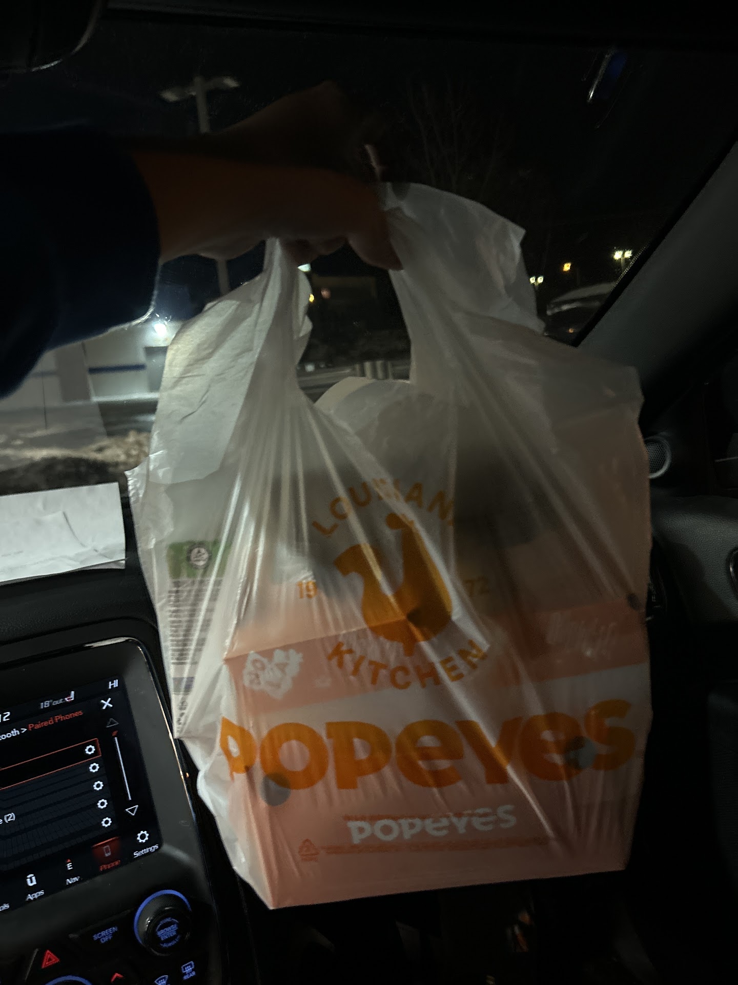 Me and my girlfriend just moved into college, and had a Popeyes back home that we were big fans of. Tonight we were in the mood for Popeyes so we both made some online DRIVE THRU orders. It's as simple as we order the food and pick it up at the drive thru. So we got there at around 6:25, after we ordered our food at 6. We pull into the drive thru, where there are 2 order lanes. Someone is in the outer one so we pull into the other. Right when we pull into that spot, the other person is done, so we expect to be next over the speaker to tell them we had an order to pick up like the website told us to do. So we wait, and wait, and wait, and there is nothing. We must've sat there for a full 5-10 minutes in complete silence waiting. So instead of waiting any we just pull into the drive thru line. Once again we have to wait 5-10 minutes for the person in front to finally get their order.