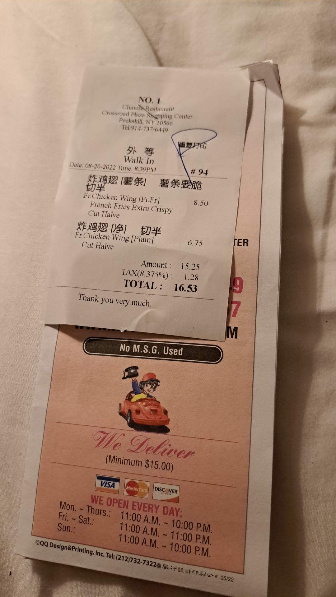 Read moreI grow up in the Bronx, and I really miss the Chinese food there. I moved to Peekskill 2 years ago, and have ordered from three local Chinese restaurant's. This is an honest review of no.1 Chinese restaurant.