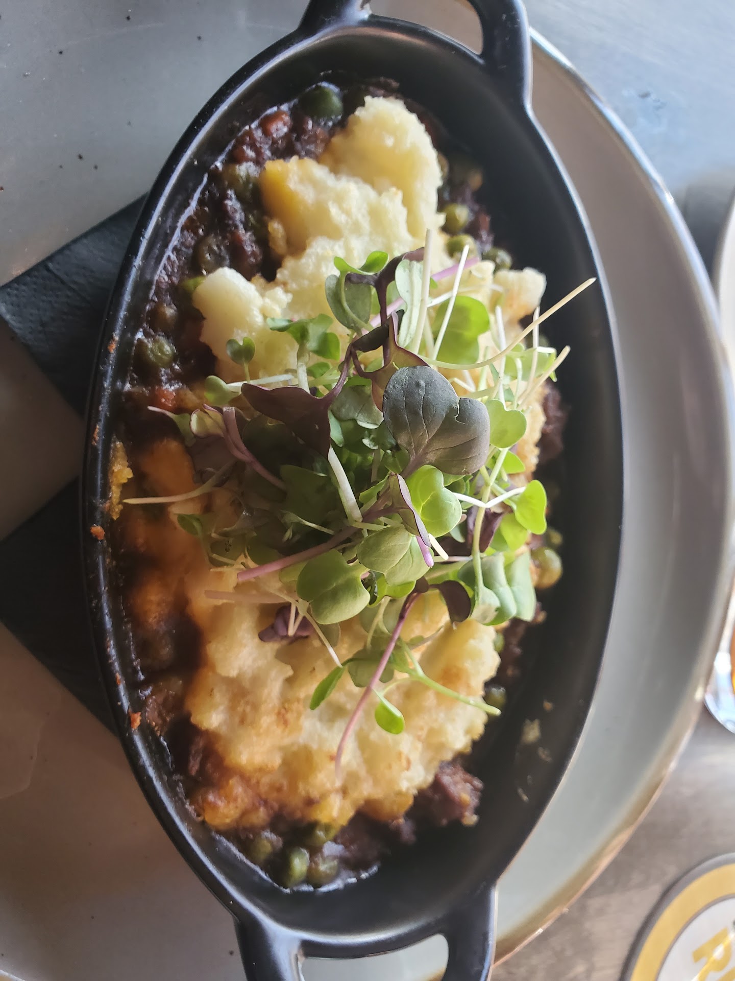she was apologetic and did comp a round of drinks, but this place clearly has some serious staffing issues. and it's a shame because I think there's so much potential here. for the positive: my fish and chips were fabulous. my husband's beef stew was flavorless and had lots of bones, but he was so hungry, he just ate from my plate in the end.