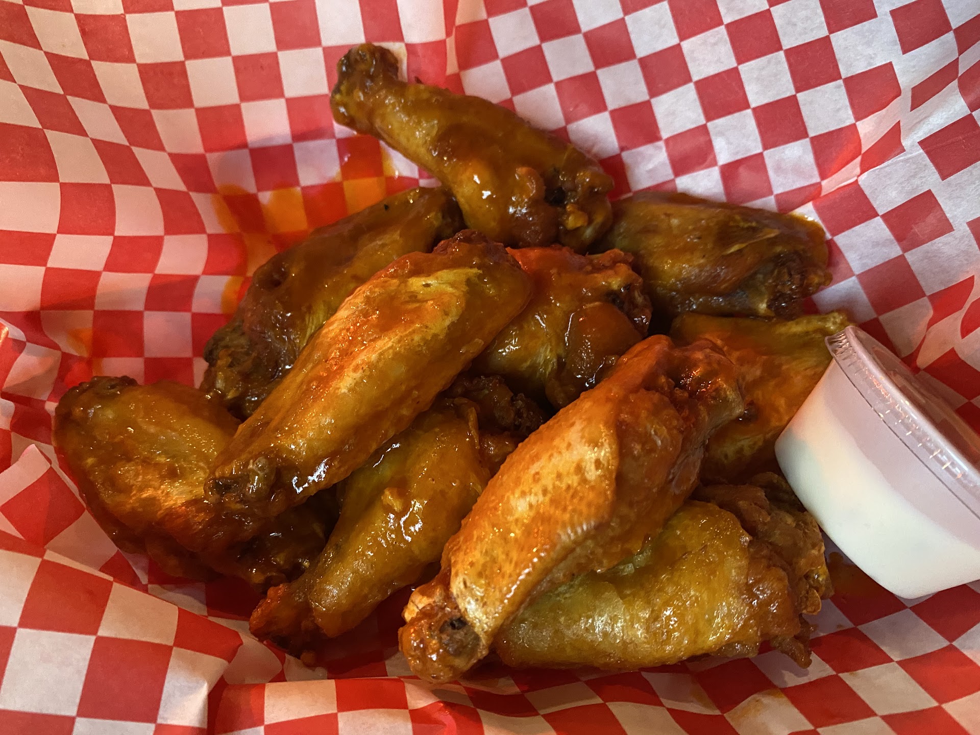 I found the wings in the menu hiding in a corner far from the appetizers because, as it would seem, they are in a class all their own. I ordered a basket of 10 wings and since I’m a spice wuss i chose medium.