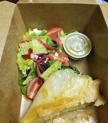 So glad we found Katery today! We had our dog with us so we were walking around looking for a place with tables outside. We were looking at the menu in the window and a boy opened the door and gave us a menu and a smile! Then another boy came out with water for the dog. We decided to stay because of the warm welcome and the menu had nice choices. I went inside to order. Tiny place- just the counter for ordering- and the kitchen was open, busy and clean. A pleasant woman took our order and recommended the wedge fries. BEST fries Ive ever eaten (and im 62 so that’s a lot of fries). I was told to take a seat outside and they would bring it out. We didn’t have to wait long before three smiling servers brought out my husband’s falafel gyros and my hummus salad with an amazing lemon dressing. Fresh fresh fresh!! A lovely girl Megan came out to check on us. Just a really great experience all around. Since my name is Karen i HAD to speak with the owner (lol) Kate who was busy cooking. I thanked her for own of the better lunch experiences we’ve had ! Her two boys were the ones who greeted us- a family affair. We live an hour and a half away but we will be back! Wish they were closer we’d be there all the time! Thanks Kate and your wonderful boys and staff! (Sorry four stars for atmosphere- you can’t help the size! But very clean!!)