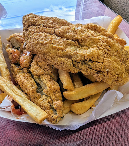 I ordered take out, then remembered you MUST eat fried fish+fries immediately or it will lose its crispy goodness by the time you get elsewhere. Itâs a pleasant little spot to eat and listen/watch some throw back R&B videos on the overhead flatscreen. Limited space, a few booths, so if theyâre taken just enjoy in your car. Itâs a new spot, so humble any high expectations beyond what I mentioned.