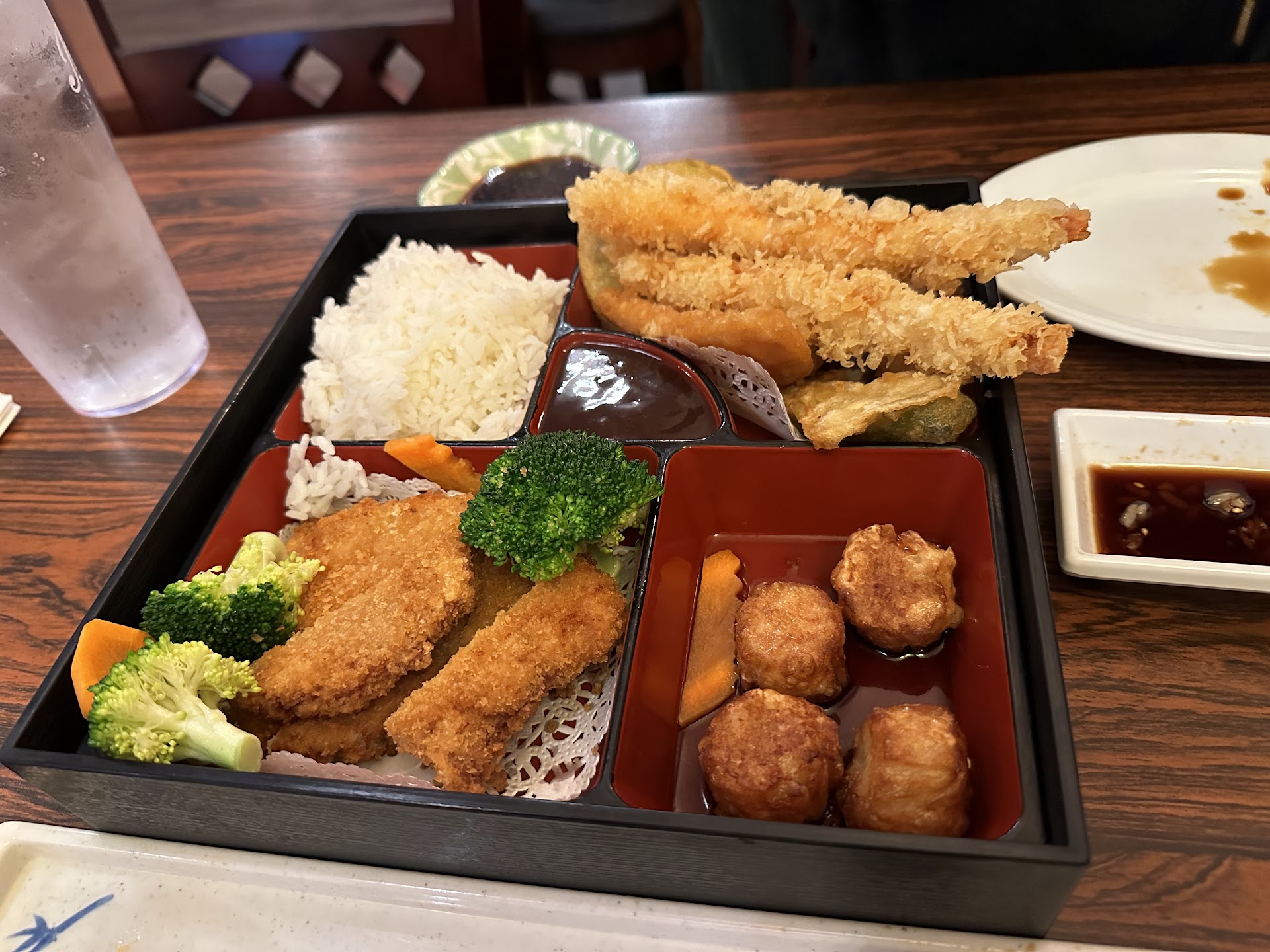 Many places have a greater rice to fish ratio than it should. Here, as you see from my spicy tuna roll photo there is way more fish and filling than rice- it’s how it should be. Everything served quickly, the order was correct and all our food was great. I loved my sashimi ‘bouquet’. Portions were just right.