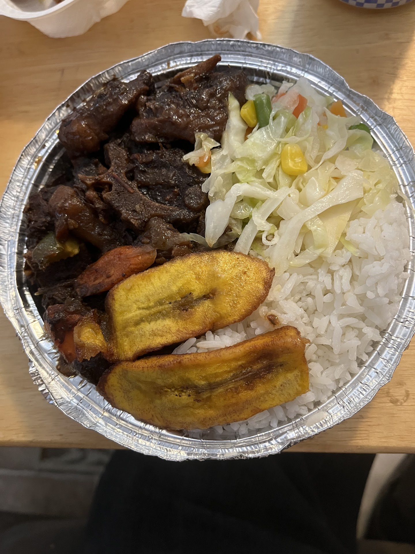 It was such an amazing experience eating there the customer service was absolutely incredible. The chef was so sweet and you can really tell he puts his all in when he's cooking it up back there. The art on the walls made me feel as if I was eating in paradise, the walls were just astonishing. My sister got the jerk chicken, oxtail and white rice she loved it she was just going on and on about how delicious the food was. I hot the fried chicken, curry goat and rice and peas it's was so good the goat was just fall of tye bone delicious tge chicken was cooked to perfection, one of the best meals ive had ever. Don't even get me started on their rum and pineapple upside down cake we sat down and tried the cakes and i had to buy two more to take with me before leaving. Overall experience was a 10 out of 10. They will definitely be seeing me atleast 2...