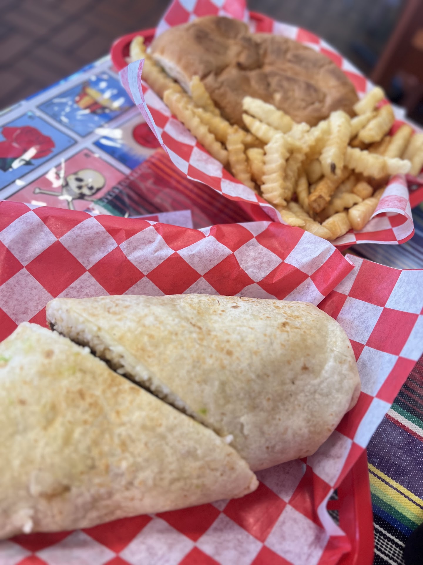 Things I liked: The service was pleasant, clean restaurant, food was available quickly and was well wrapped and presented. I liked the menu mural on the wall and the Mexican elements brought into the restaurant
