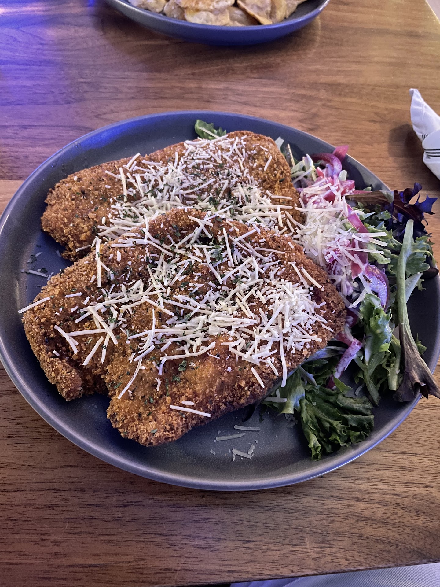 The bad: the goat cheese toast was super gross. After taking over a half hour to come out of the kitchen, a piece of the pork chop I ordered was raw. Like RAW. The majority of the interior of that piece was the color and texture of the stuff in the grocery store meat case.