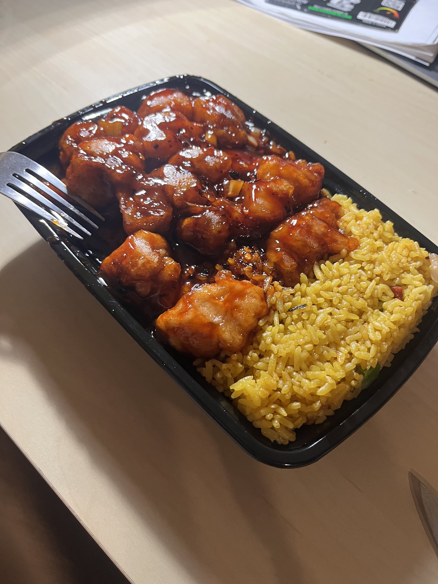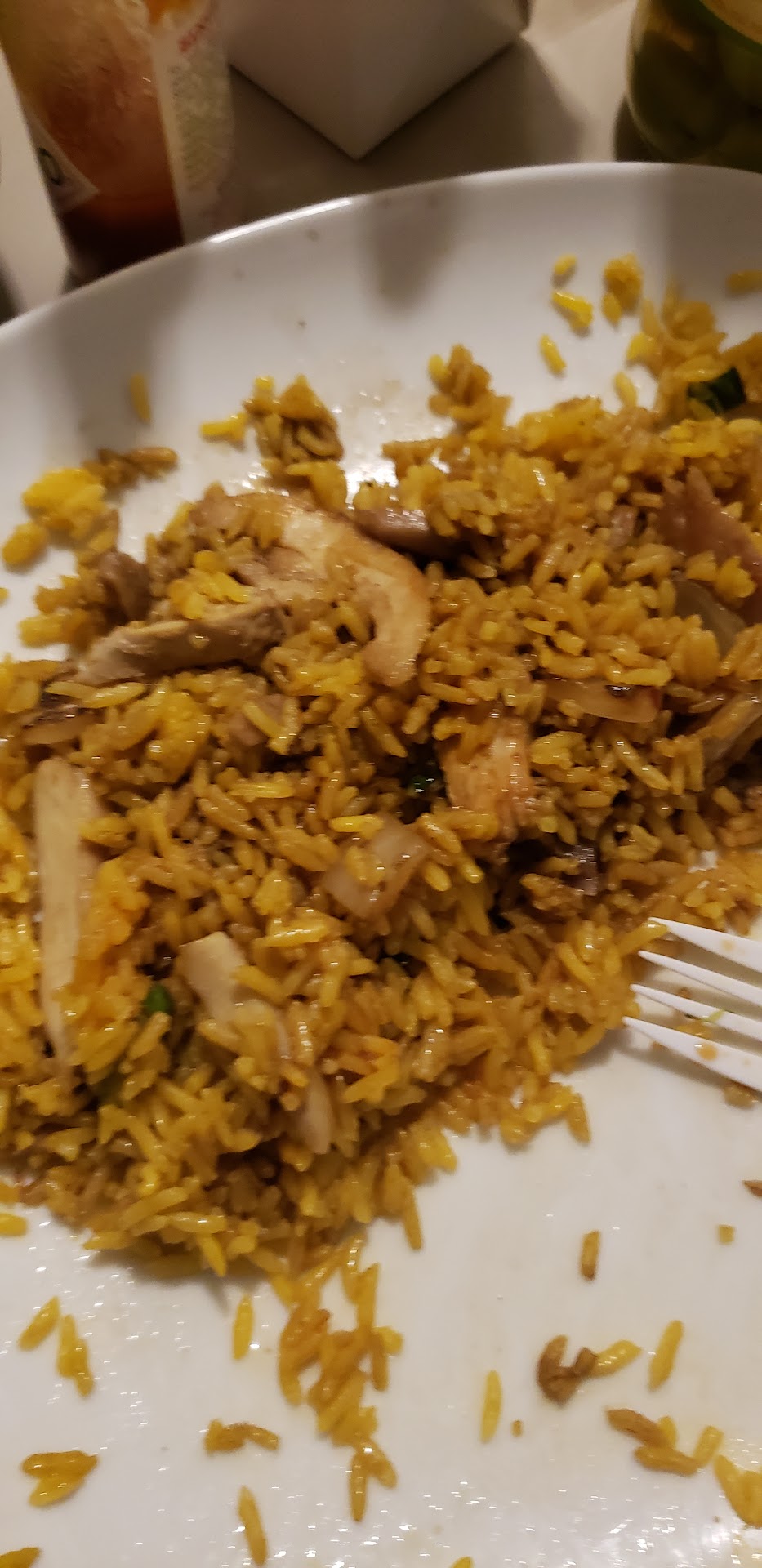 I retract the part where I said rice was dry. I didn't eat it right away when I got it so top side was cooled by then, but when I dig deeper it is sufficiently moist but not too moist for fried rice, and plenty of flavor. ( The worst being Panda dry and no flavor).