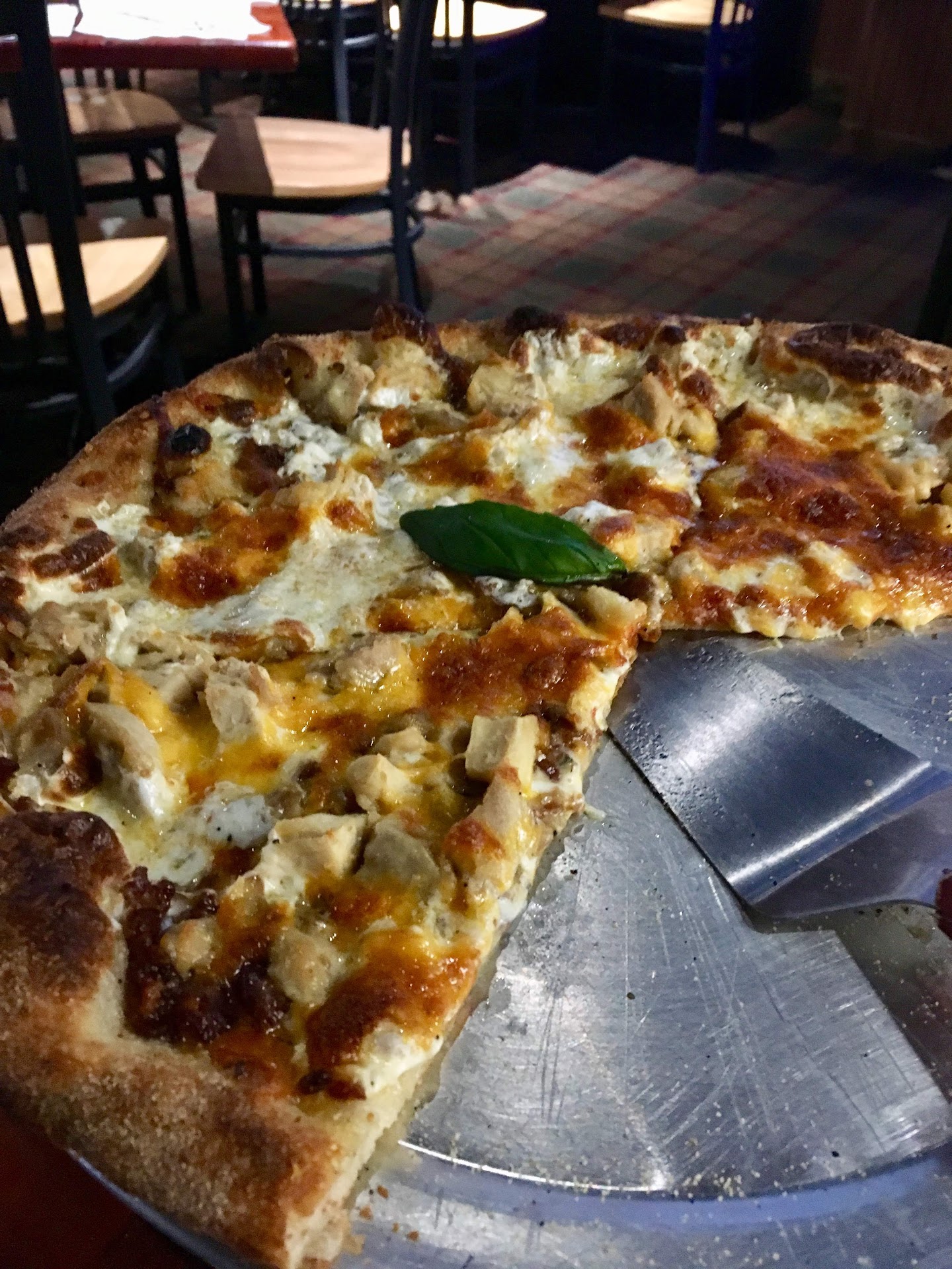 The pizza had a real nice genuine tamotoe-y flavor in the sauce, the consistency on the dough couldn't be better, nice greasy flavorful cup and char style pepperoni, and that nice somewhat oily, good chrunch on the outside with a tender inside type of crust. Brick oven!