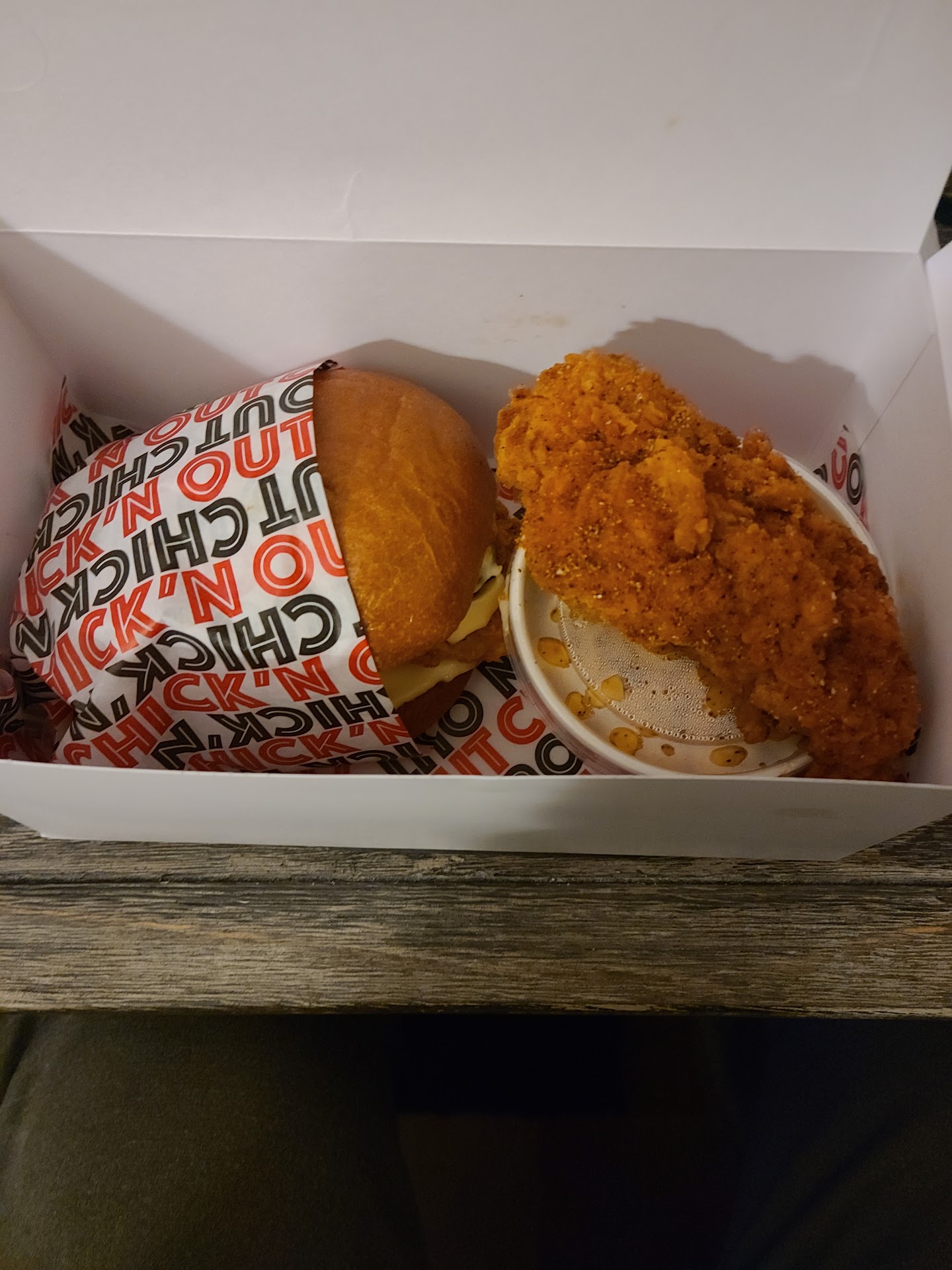 Read moreI was VERY DISAPPOINTED when ordering for the first time!! I went to Chick’n Out after work to get dinner for myself and my son. While there, the kitchen door was propped open while the staff was preparing food. Everyone I saw had gloves on to handle the food except one person. I personally saw when the bun to MY sandwich came out of the toaster, they touched it with BARE HANDS before the person assembling the sandwich walked over to grab it before assembling my order (the assembler was gloved). The person who touched my food with bare hands had been touching their own apron/clothes and touched other items in the kitchen area that was visible through the open door. I did go ahead and bring my food home but only took one bite of the sandwich and could not finish it after seeing that. I give them a 1/5 for not adhering to food-handling standards. I give the food 3/5 stars because after all of that, the only flavorful items were the tenders and the fries. The sandwich (I ordered the classic) was cold as if it had been sitting in a cooler part of the kitchen and was flavorless without the sauce. The Mac and Cheese was overcooked, dry (NOT cheesy or creamy), and was NOT flavorful or seasoned AT ALL except for whatever was sprinkled on top. It was ultimately not worth my time/money to go to this place. I do not expect to return unless (1) one of my teenage kids unfortunately wants take out from there again or (2) they would like someone to teach them how to make Mac and Cheese worth selling...