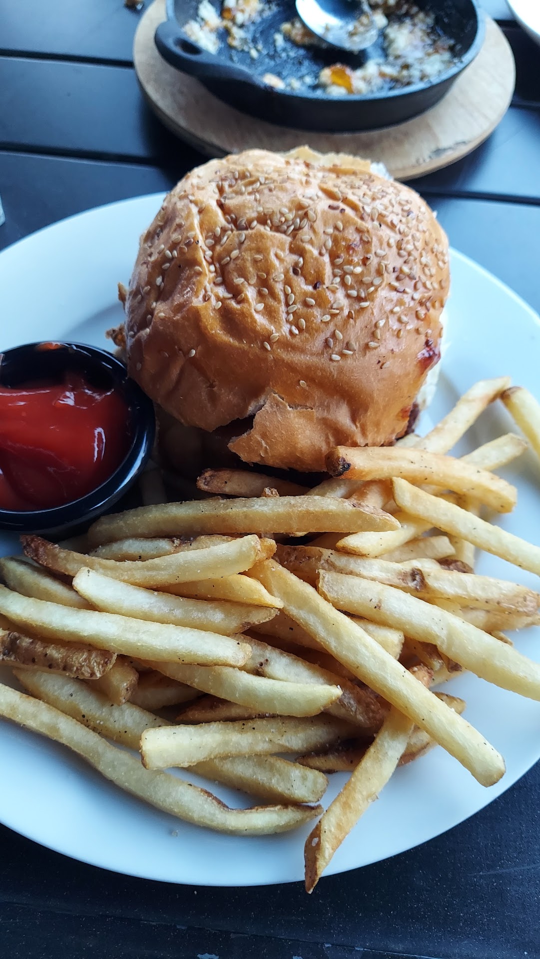 Read moreWent here for my partners' birthday last night with a small group. Atmosphere was nice, but everyone at the table had an issue with their meal. The "New York Strip Steak" my partner ordered had a huge tendon running through the meat. We suspect it was actually a flank steak. He initially wanted the braised beef sandwich, but it was sold out.... at 6pm on a Saturday. My burger was mid and I did not finish it. I could have gone across the street to Swillburger and had a more satisfying meal for half the price. The fries were cold, bland, and came at an upcharge. They slather everything in hot honey, including for some reason the Collard greens. Wedge salad was missing crumbly blue cheese. The vegan meatloaf was a tiny portion for a large price.
