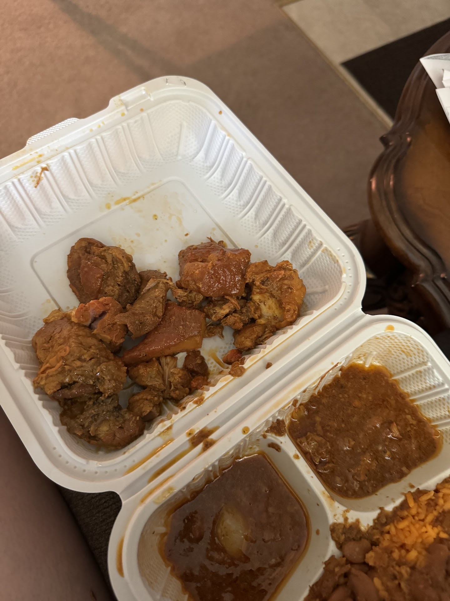 I've heen coming here for years, since a kid coming with my mom and now in my 30s. These are new ppl from who I remember. It was recently remodeled and looks a little better. The food is pretty good. The portions are good if you get a large order with meat & rice but they are stingy with "house hot sauce," ranch and other sauces. They give u ONE teaspoon size tiny little container of extra sauce when you ask. I'm on a low carb diet bcz I eat too much rice & beans, potatoes etc and got some extra back n belly fat ughhh. I asked for just oxtails and salad without rice and they tried to charge me more than the amount posted, I said no, how is it more with me getting less. So then she said ok give it to you same price. So im like this is still too much. I'm getting less and you're using a smaller container and wanted to put the salad in a separate container for $4 more on top of the $21.38 (cant remember the exact change amount) instead of with my oxtails. For just oxtails, no rice & beans, no plantains. Salad normally comes with it so why am i paying extra just because I don't want rice and she refused to put it in the same container with my oxtails. They have terrible customer service. They never say hello, smile or friendly like the previous owners. They are stingy with pork skin also. I ended up with just oxtails. Found another restaurant who will give just oxtails and salad $3 less and they also have jerk...