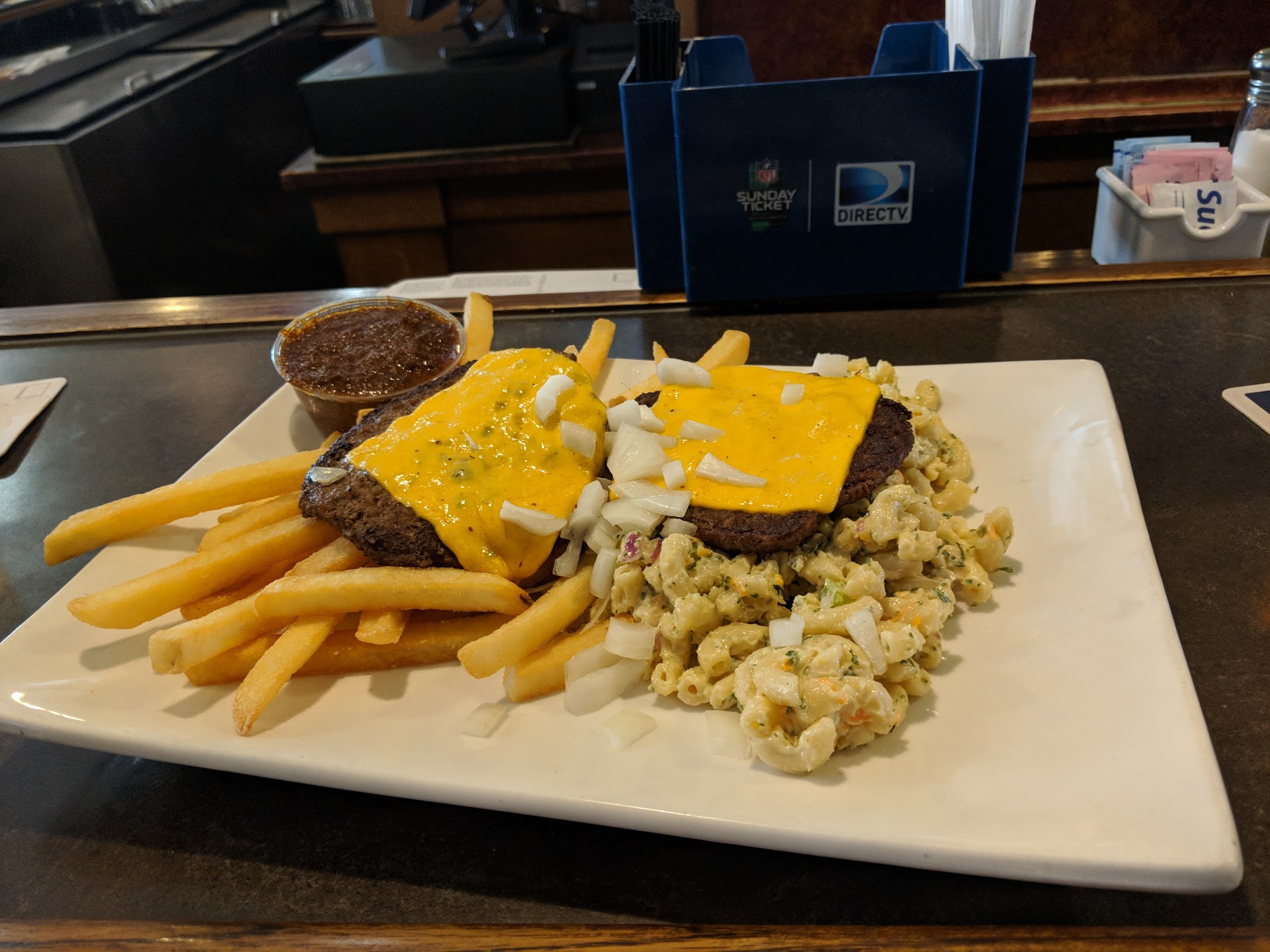 Read moreWe went here for a company dinner with Hyundai and almost everyone was disappointed with their meals. The appetizers were good but after that the entrees went downhill. We came on a Friday night with a pretty big party for a restaurant that didn’t have many other customers besides the ones sitting at the bar. One waitress attended us and she did a pretty good job keeping up on all the drink orders, refills, and food orders. She did an amazing job, I cannot blame her for how the food came out. I ordered the World Series burger “medium well” and it came out the same color as a hockey puck all char in every bite. The guy next to me ordered the same “medium rare” and his was cooked to hockey puck as well. Others who ordered the fish and chips complained of lack of seasoning on the fish batter. But the buffalo wings were good, pretzel sticks, and quesadillas were all very good. Maybe the food is better when the kitchen isn’t cooking for a big party. 🤷🏽♂️