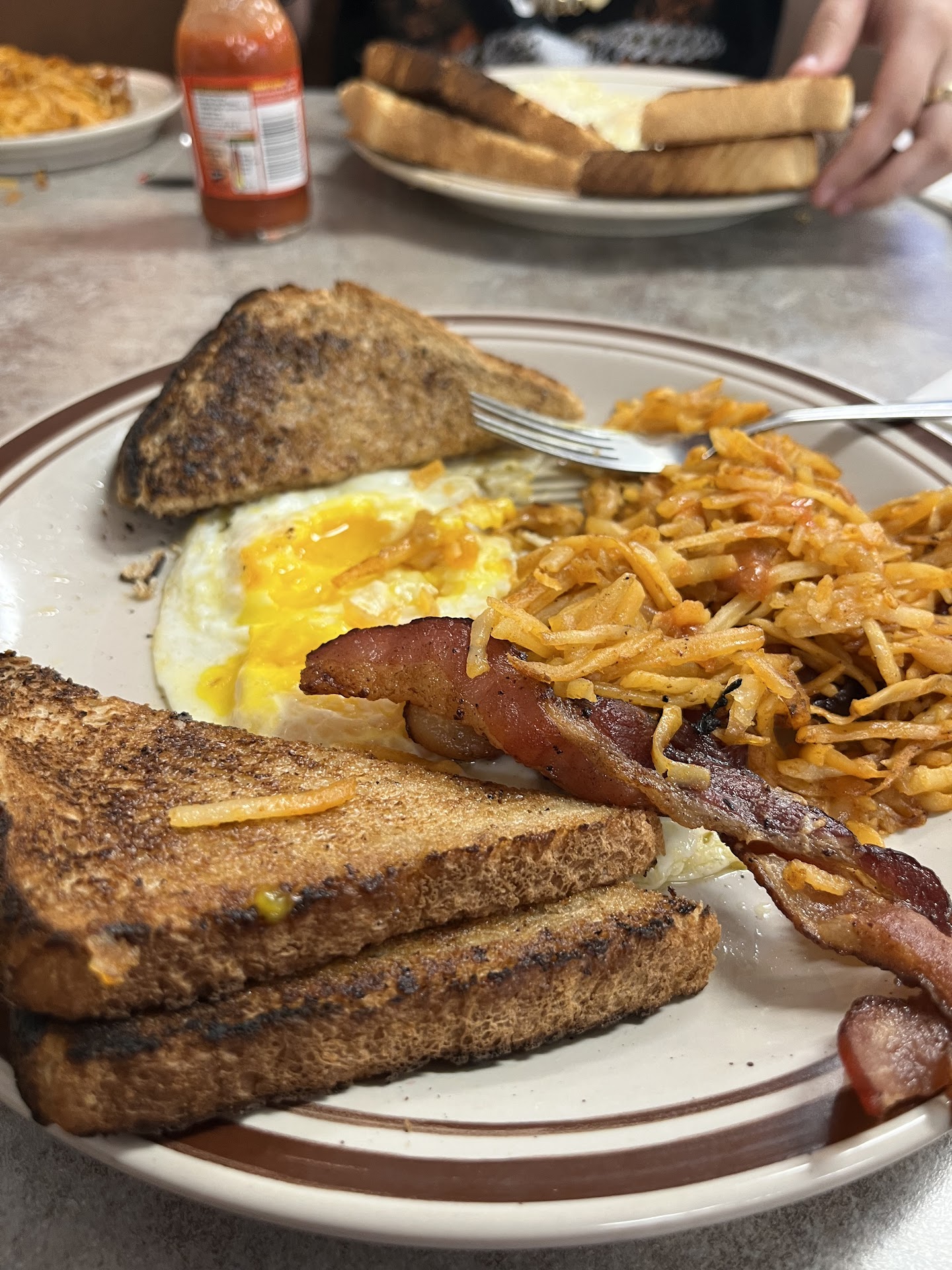 Read moreI haven't eaten here in a few years and was surprised at the fast service. The 2 people with me were reluctant to eat there due to negative experiences of long wait times for their orders and disappointment with the food. However, the hostess and waitress were pleasant and served us right away. I had pancakes and link sausages. The pancakes were not hot, a bit flat, probably covered in a warmer and sweating. The coffee wasn't hot either and certainly not fresh, so I only drank half. A fresh cup of coffee could have offset the food. Perhaps if we had come earlier than 10:45, the food might have been fresh from the grill & received 4 stars. You see, when I cook, I want my guests to enjoy every bite and then rave about how delcious it was. I would want them to keep coming back. Perhaps it was one of the "off" days......